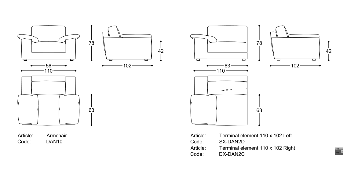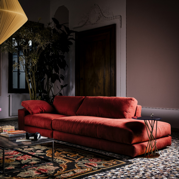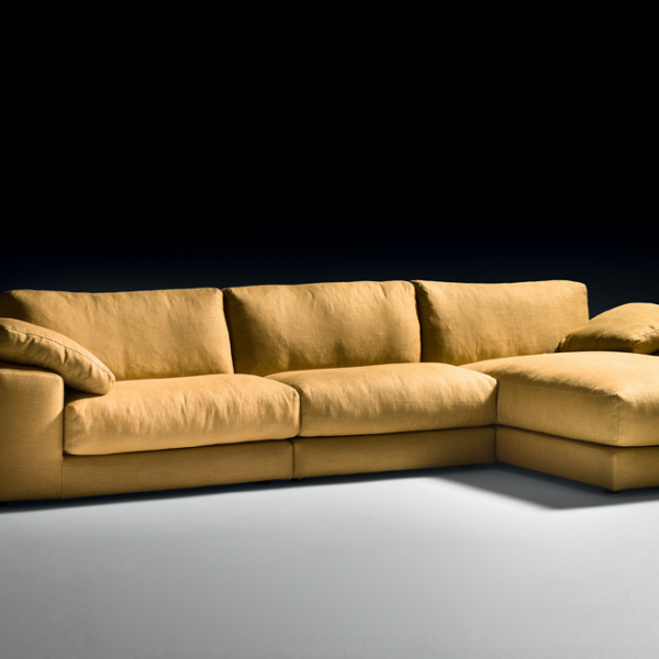Back cushions in 100% European, channelled goose feather, 10% down, closed in independent rooms, with central
