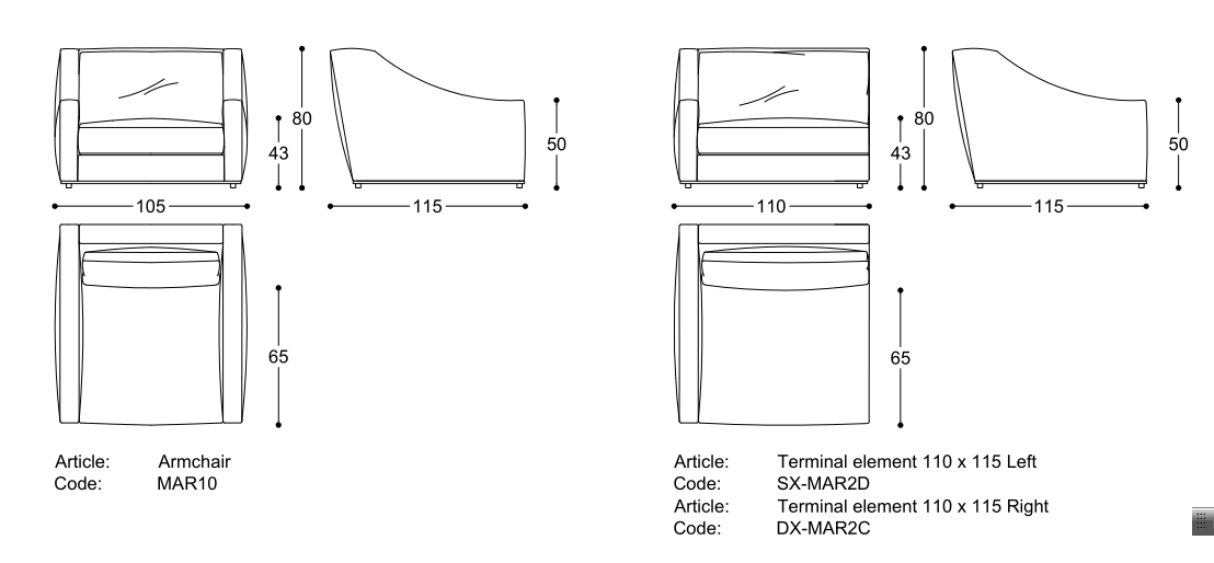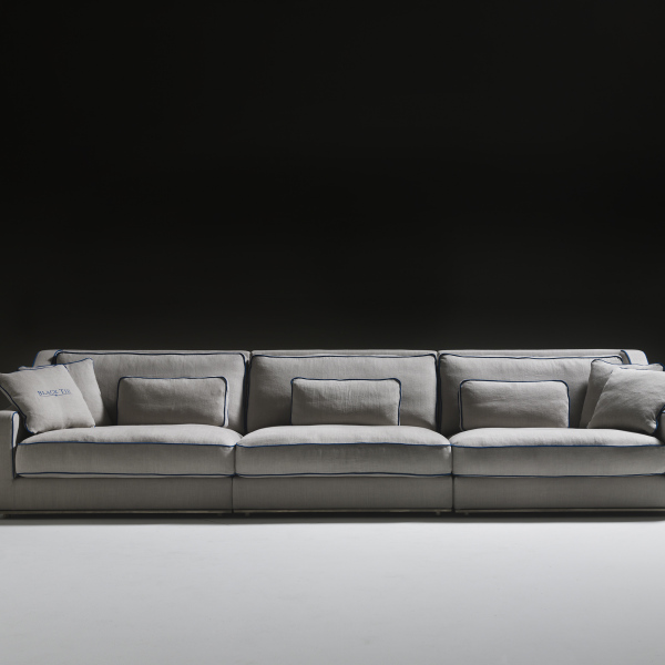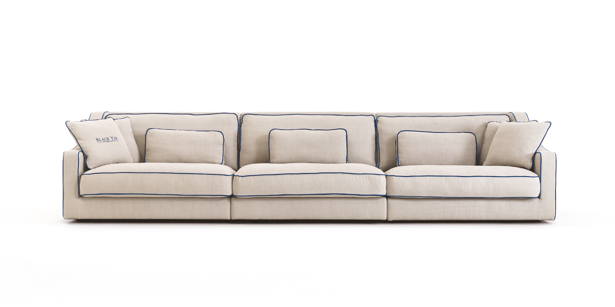 expanded polyurethane, upholstery in thermo-bonded fibre with stretch jersey. Seat cushions in 100% channelled
