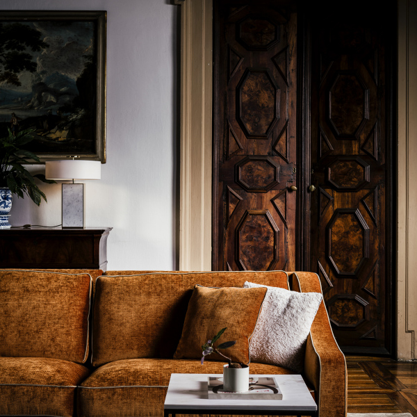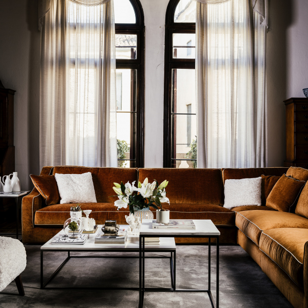 Cuscini seduta in 100% piuma d’oca, di provenienza europea, 10% piumino, chiusi in camere indipendenti l’una