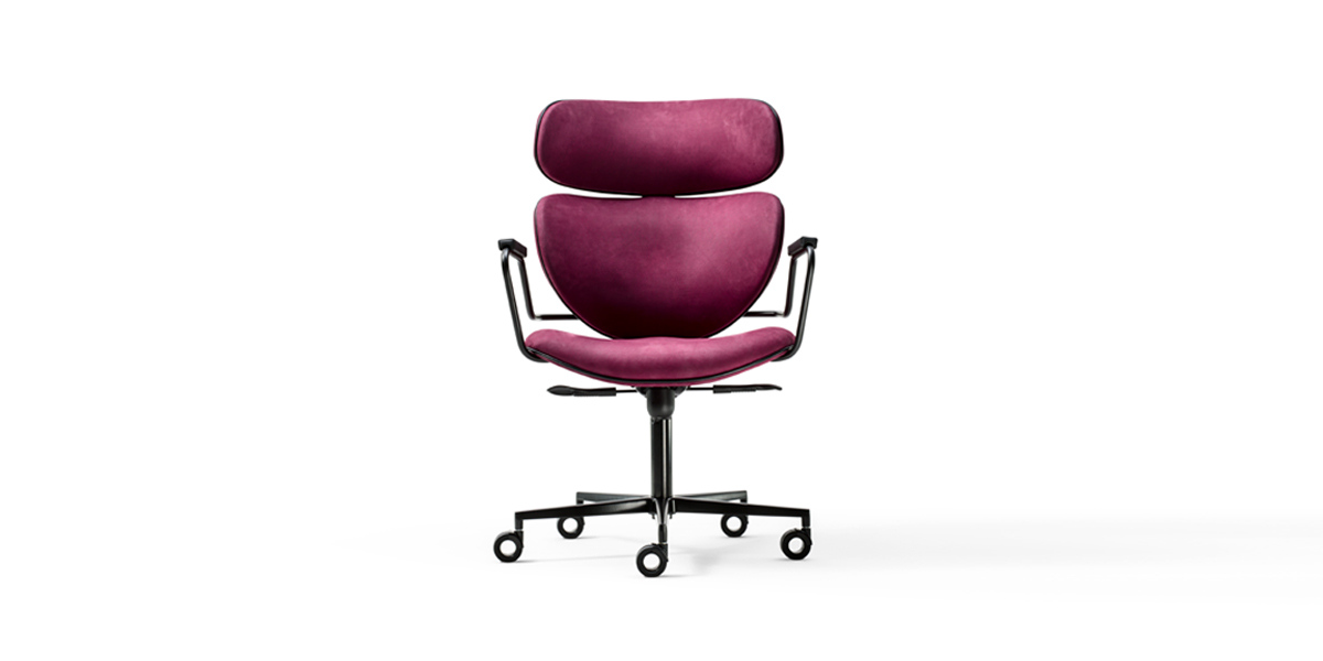 5-point-star base in die-cast aluminium, matt black varnished. Soft self-braking castors. Tilting 4 positions. Gas-lift