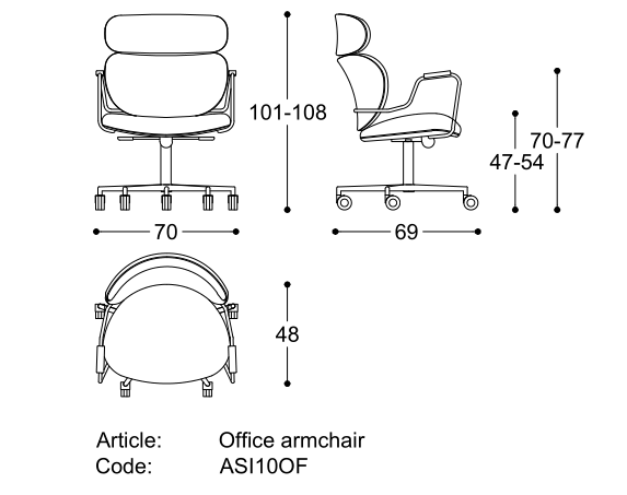 height mechanism. Steel armrest, matt black varnished. Non-removable cover.