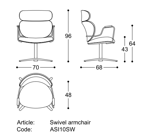 Armchair with swivel base and tilting mechanism. Seat, back in curved beech wood, padding in high-resilience