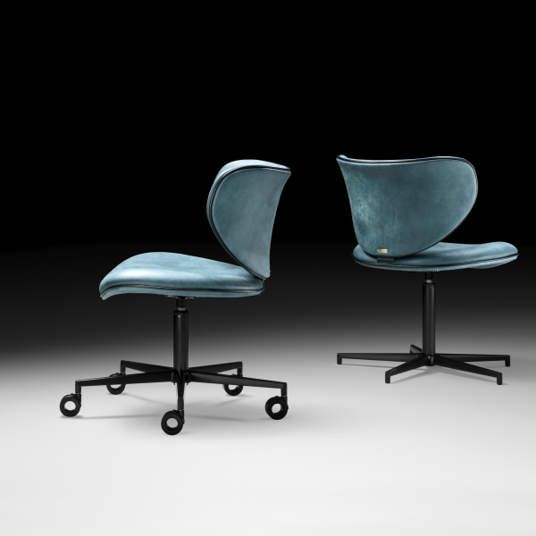 5-point-star base in die-cast aluminium, painted matt black, with soft self-braking castors, or base without wheels