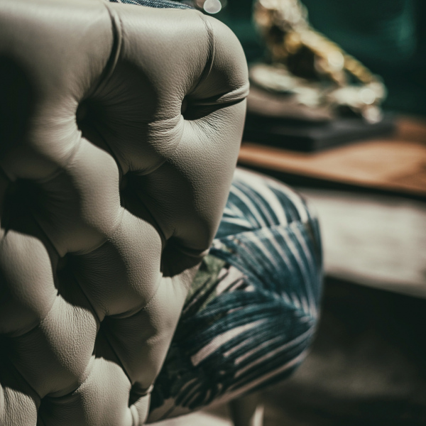 differenziate ad alta densità, retro schienale lavorato a mano a capitonné, piedi rivestiti con puntale in metallo oro