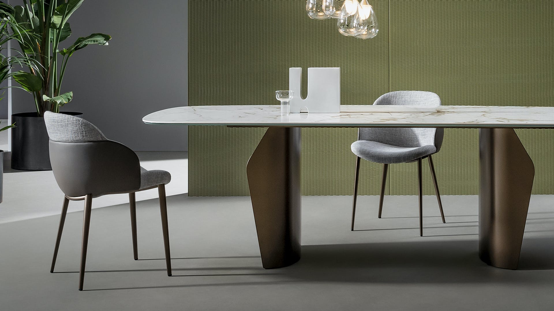 Comfortable and soft, the My way and Miss My way upholstered dining room chairs have a prominent backrest resembling an elegant shell that protects and envelops an exquisite casing. Thanks to the wide choice of finishes, materials and colours, and the various options of combining upholstery and bio-upholstery, My way chairs can be customised for a fluid dialogue with the surrounding environment.