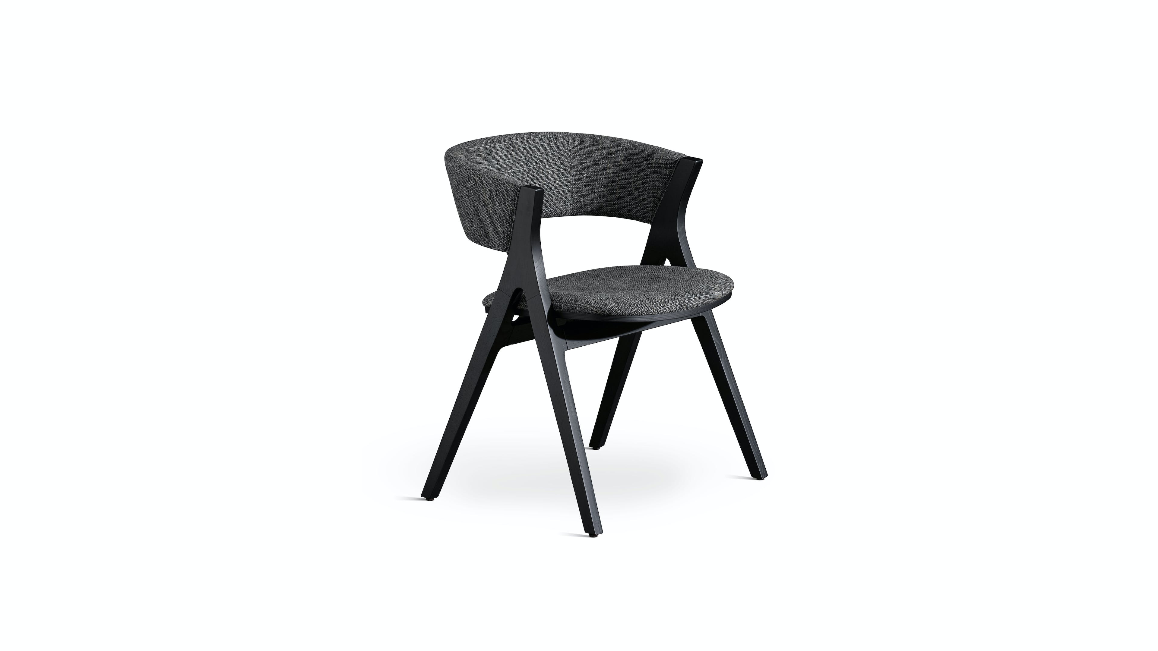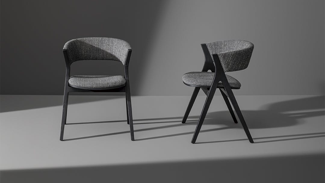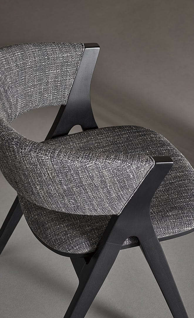 Remo, a chair with an evocative name, draws its inspiration from the image of a person rowing a boat across a stretch of water. In actual fact, the front and rear legs are joined as if to form a pair of moving oars. The pattern of the legs highlights this sense of dynamism, while the continuity in the frame enhances the warmth and solidity of the solid wood which is available in different shades. The curved back makes this seat welcoming and ideal for placing around a table in the dining area or for greater comfort in a work space.