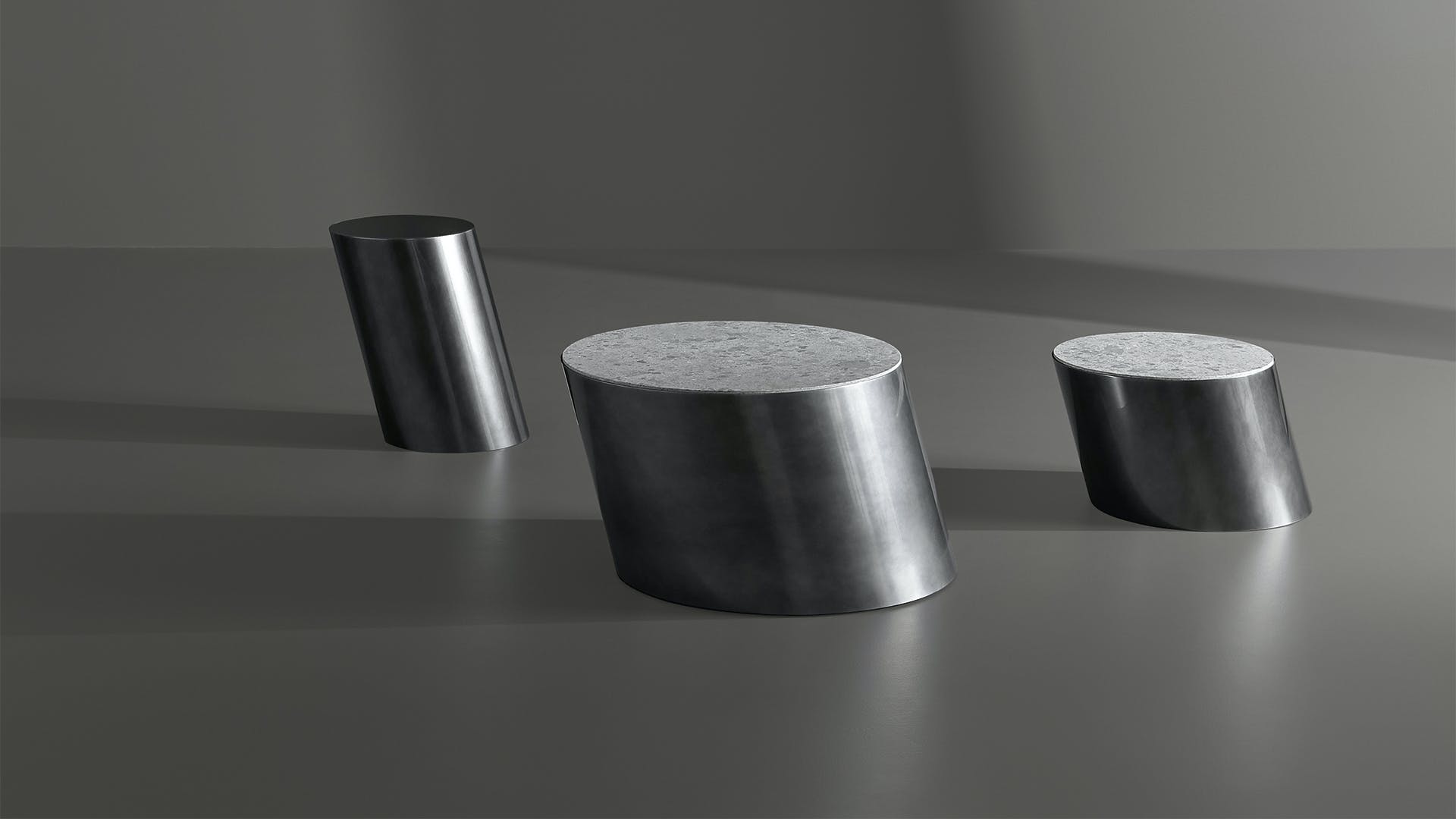 The Pisa coffee tables, designed by Mauro Lipparini, are furnishing accessories with a strong character, thanks to the monolithic design of their bases. Available in the single block version with a recessed or cap-like top, the signature feature is the angle of the base which leans diagonally like the tower after which they are named. Metal, used for the base, is the common thread running through the collection: the minimal decor coffee table assumes its own identity based on the material used for the top, available in ceramic, glass, marble or metal in the same finish as the base.