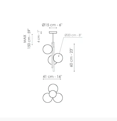 The Bon Ton pendant light, conceived by Studio Team Design, develops around its central axis, consisting of three metal blades in brushed nickel or in the elegant copper-bronze finish. It is an object in which the glass globes that form the lampshades, available in transparent, amber or smoked glass, are arranged in an irregular order, accentuating their dynamic nature. Bon Ton is available in a single globe version or in the three, six or eleven lights version that give further movement to the figure of the lamp.