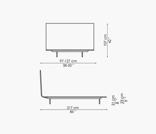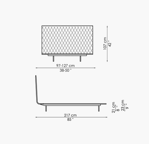 The design of the Thin single bed has a graphic and contemporary appearance, a continuous line that forms the headboard and bed, giving a minimal and airy appearance that balances the large surface of the headboard. Four thin metal feet discreetly support the sleeping section, giving an additional sense of lightness to the whole. The perimeter of the bed is embellished with a fabric profile, available in a wide range of colours. The option of choosing the colours of the border allows elegant combinations or interesting contrasts to be created with the cover (which can be made of fabric, leather or eco-leather, removable in all versions). Alternatively, it can also be produced in the embroidered version, with a modern and elegant diamond pattern (Thin ego). The Thin designer single bed is available in double or single versions.