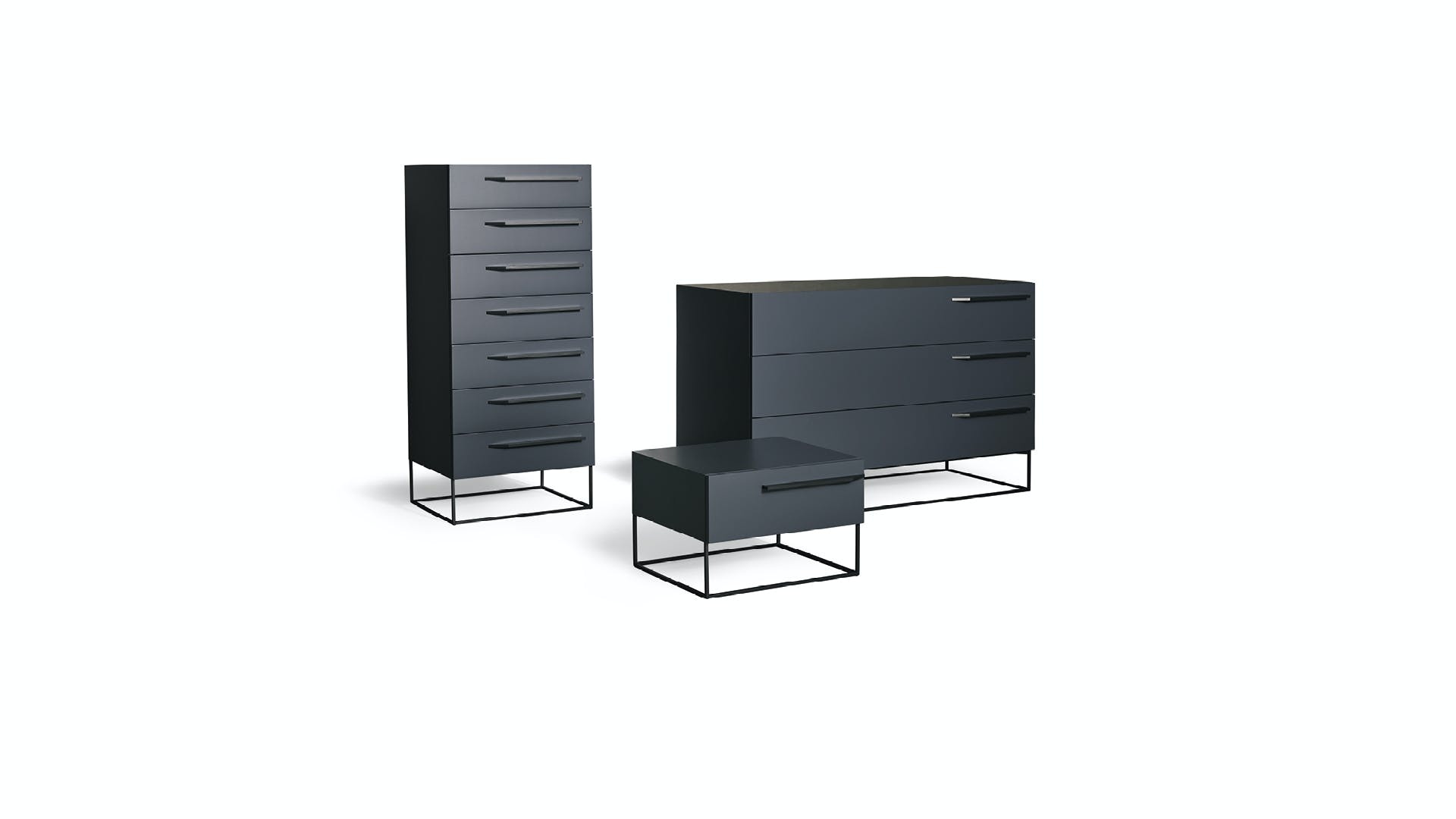 A collection of furnishings for the bedroom, with the capacity “to be”, rather than simply to appear, perfectly at ease in settings with different aesthetics. To Be is a collection of cool bedroom accessories consisting of a drawer chest, a bedside table and a highboy that creates an organic design in the bedroom. The structural and formal lightness is derived from two design factors: strict geometric shapes and the choice of the painted metal base, which slims down the unit through a principle of volume subtraction. The To Be accessories for bedroom feature a matt lacquered wooden structure, available in three different colours (white, anthracite grey and dove grey), making it possible to satisfy a variety of tastes as well as facilitate interesting combinations with the shades of the painted metal base. The metal handles with a matching ?nish are a continuous feature shared throughout the entire collection. Besides the multiple customisation options, there is also the possibility of having a plinth base version, available in numerous metallic colours which can be mixed or matched with the lacquered wood structure. With great attention to detail in each design, any combination can create a modern, sophisticated atmosphere.
