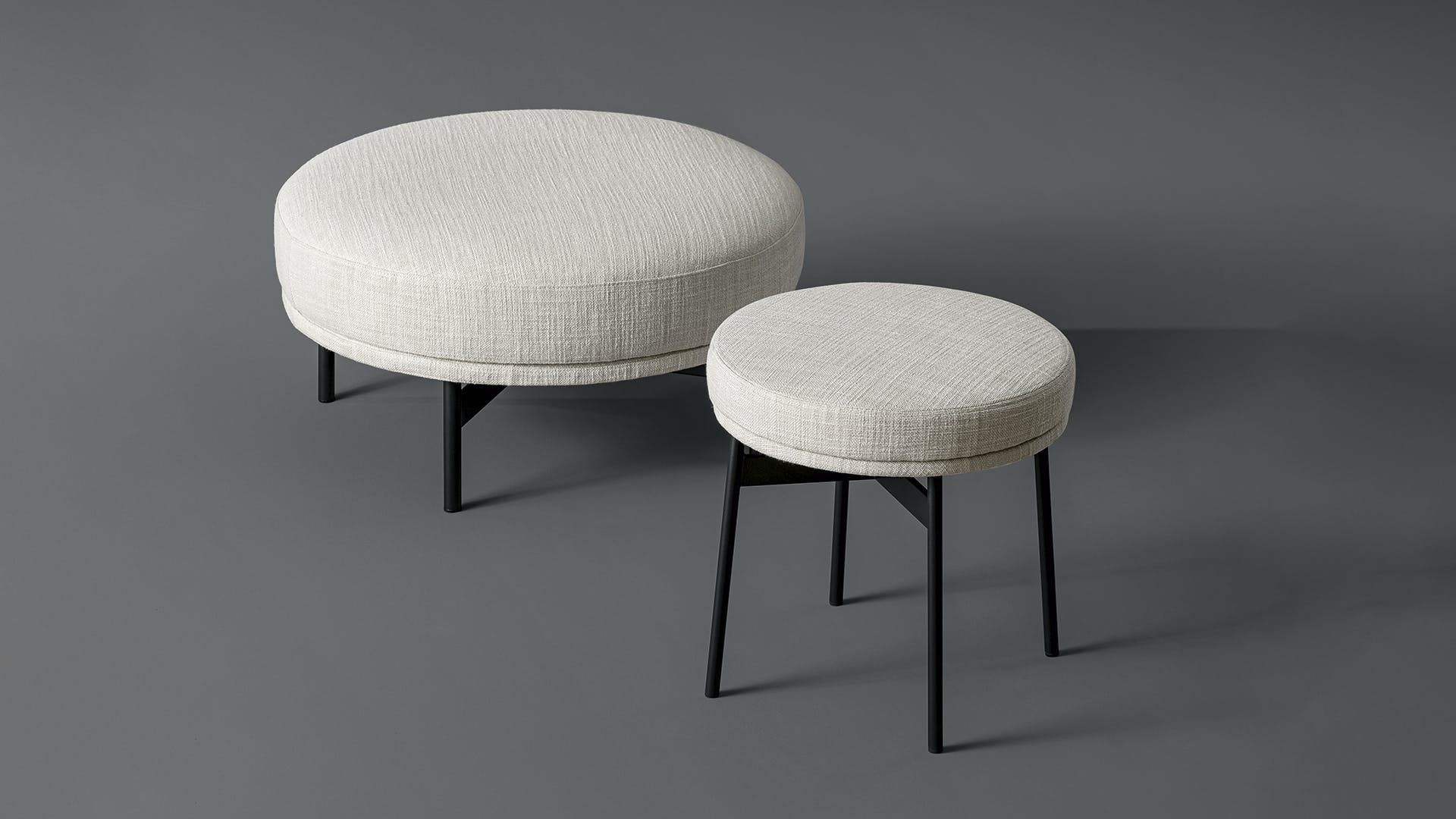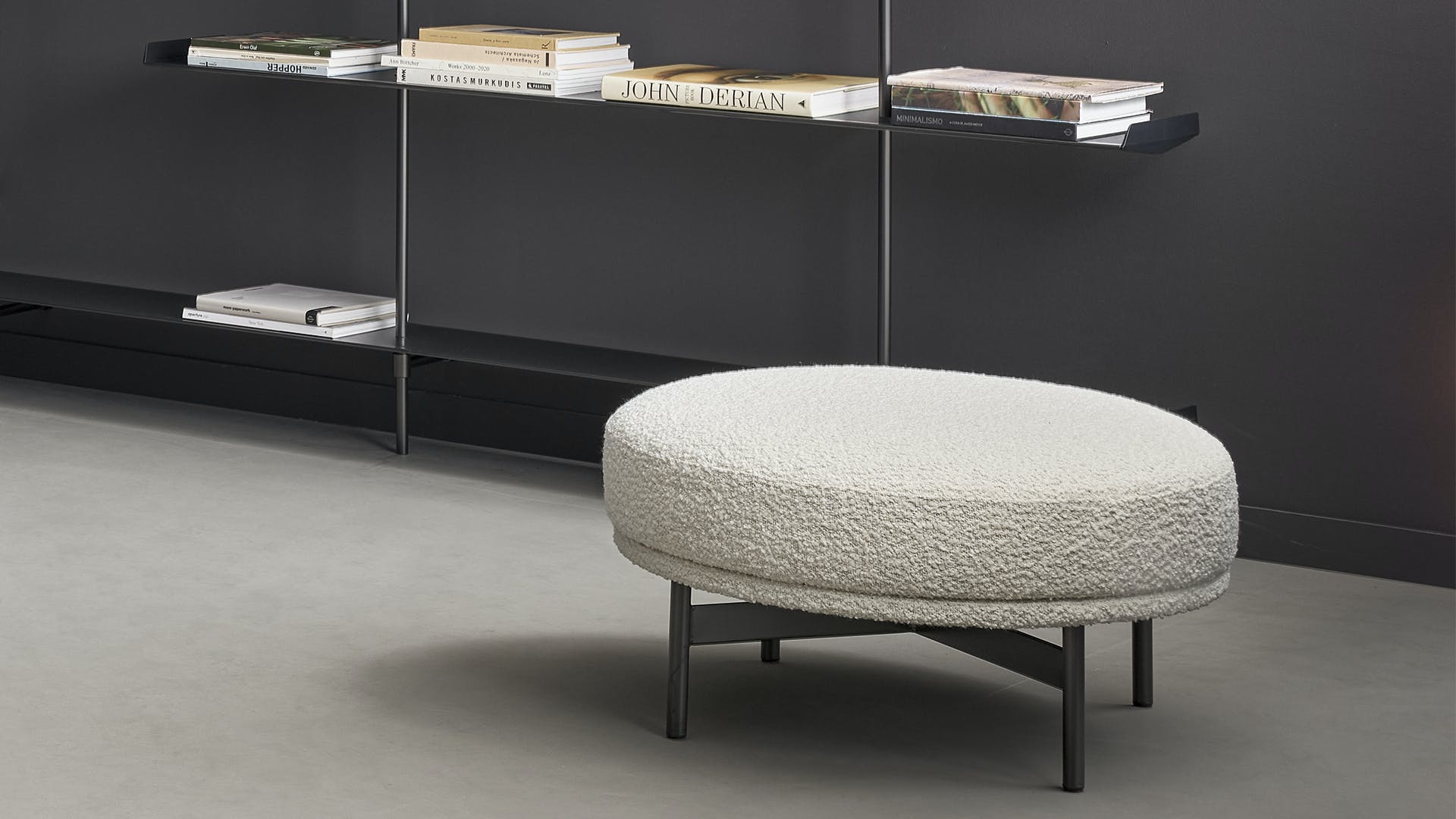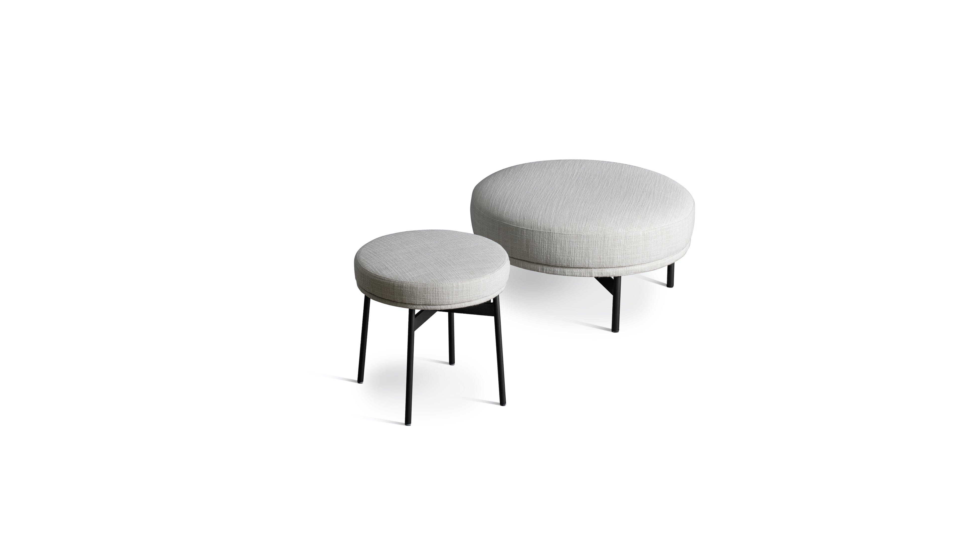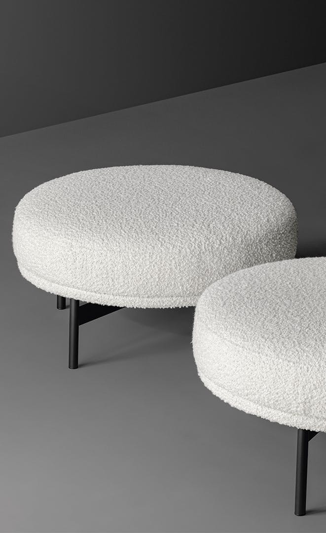 The Neuilly round pouf is available in two different sizes and is characterized by the immediately recognizable slender tubular metal frame which can be found in the other pieces of furniture in the Neuilly collection, together with the generous padding of the support. Visual elegance and purity of form are the stylistic features of this versatile and light-figured piece of furniture.