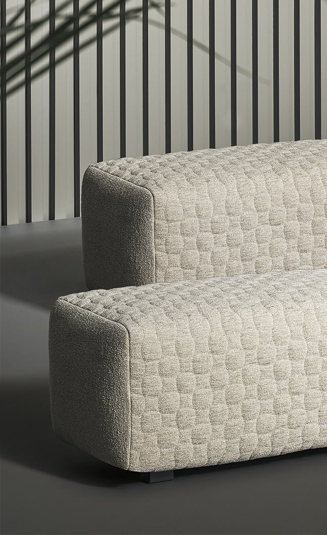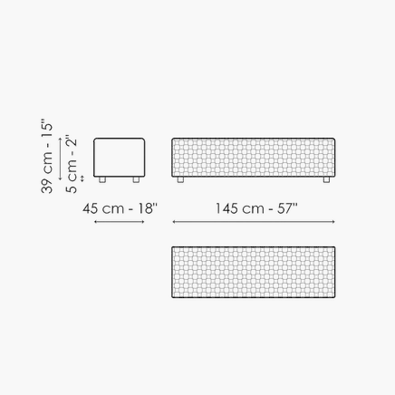 By paying attention to every single detail, the Intrecci elegant footstool collection expresses the authentic values of Made in Italy, the true implicit content of every Bonaldo product. The woven seams, which represent an elegant ornamental decoration, embellish the covering of a design object where aesthetics and practicality come together. The Intrecci collection includes a bench seat and poufs in three different sizes, designed to fit every need and to create coordinated environments. The removable upholstery is available in fabric or leather.