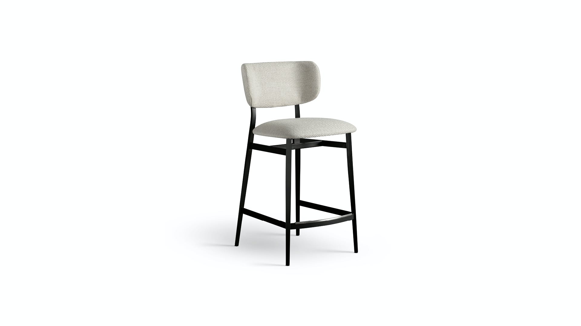 Notable for its slender and subtle shape, the Noor too upholstered stool is the result of a decision to highlight the shapes and enhance the comfort qualities of the padded sections which are mounted on the linear steel frame. The project is highlighted by the design of the cantilevered seat and backrest which although supported by the linear steel structure, seem almost suspended in the void. The large padded sections are designed to offer the body comfort while sitting along with freedom of movement. Noor too is available in different finishes, colours and materials, starting with leather, eco-leather or fabric upholstery.