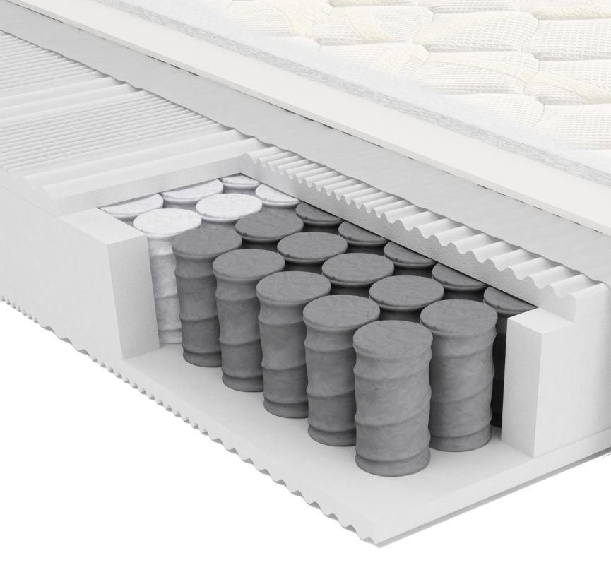 Mattress with individually nested pocket springs with high density, high supporting capacity, hypoallergenic (800 springs individually nested pocket springs with independent movement in the double-bed size)