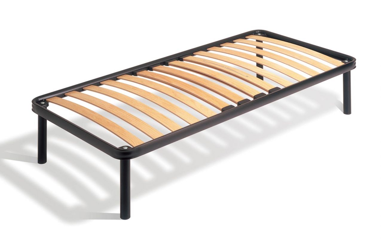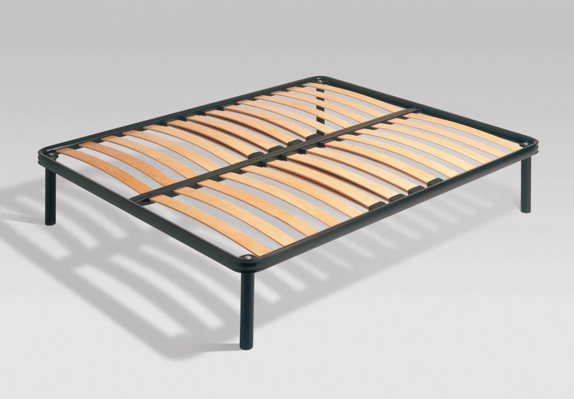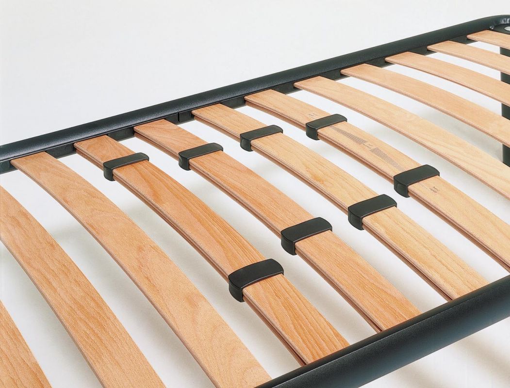 Orthopaedic slats bed base, with controlled-hardness multilayer wood.The adjustable firmness in the central zone enables the rigidy of the slats to be calibrated to respect the natural configuration of the spine.I