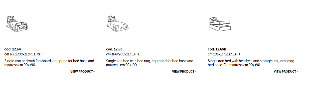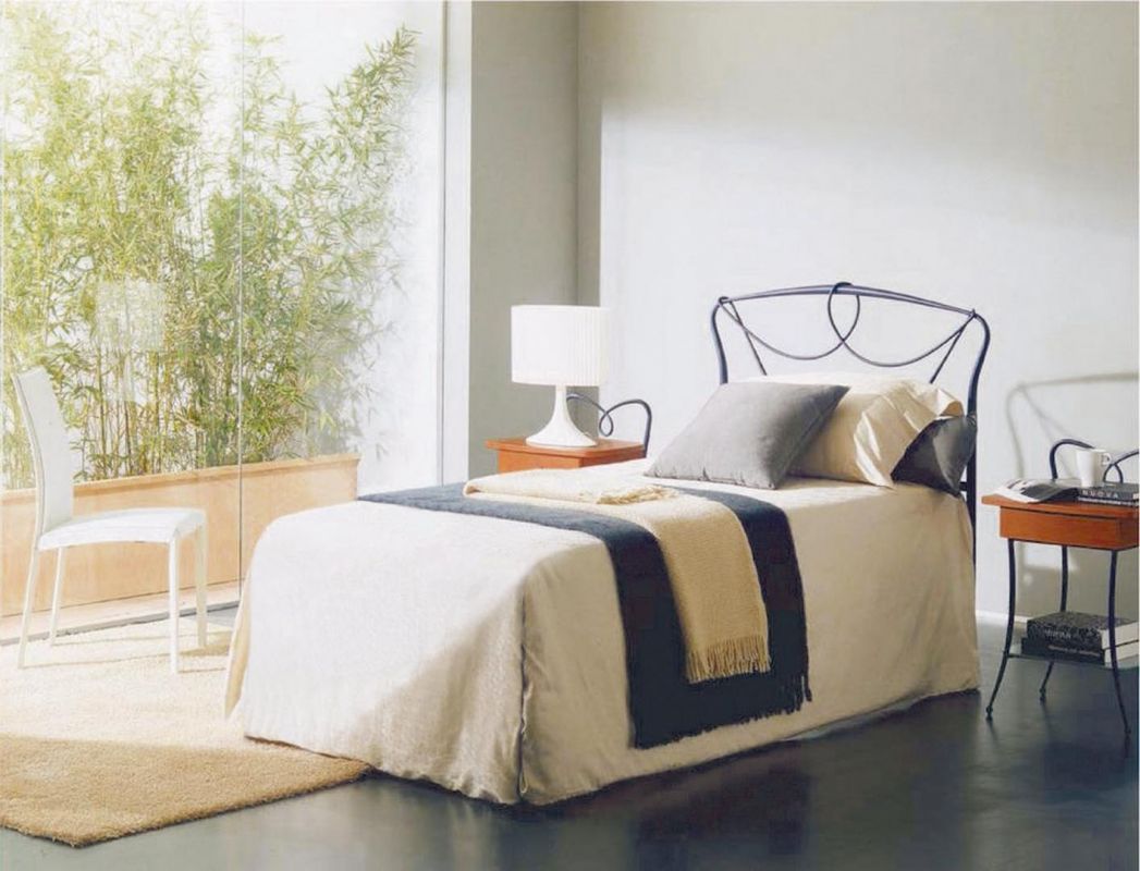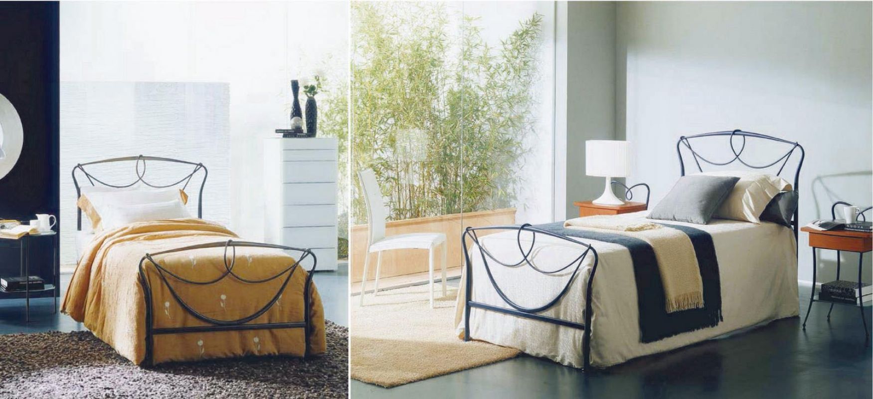 Iron bed in lacquered or hand-coated metal frame, in single version, with foorboard, bed ring or storage unit.