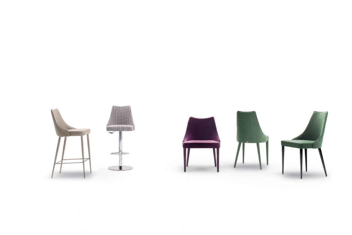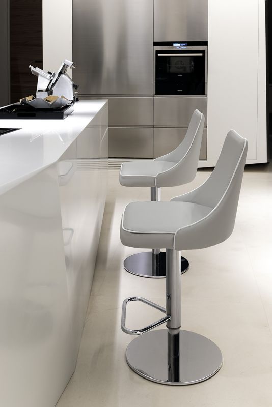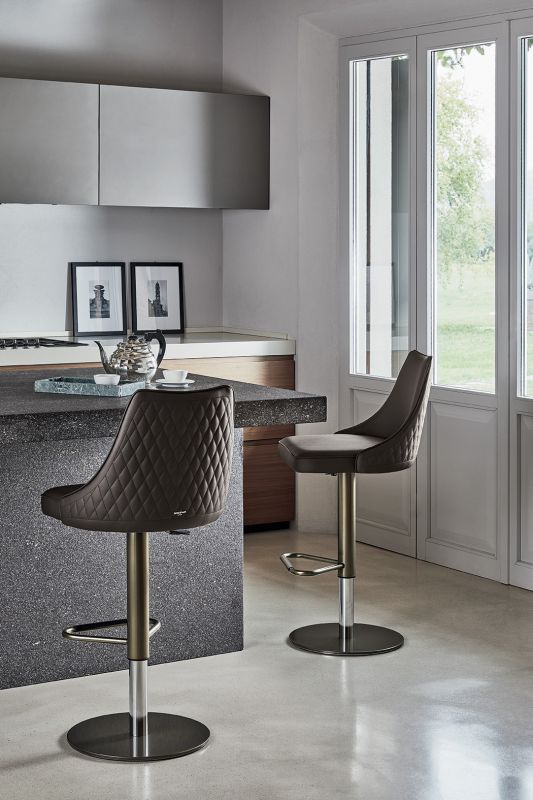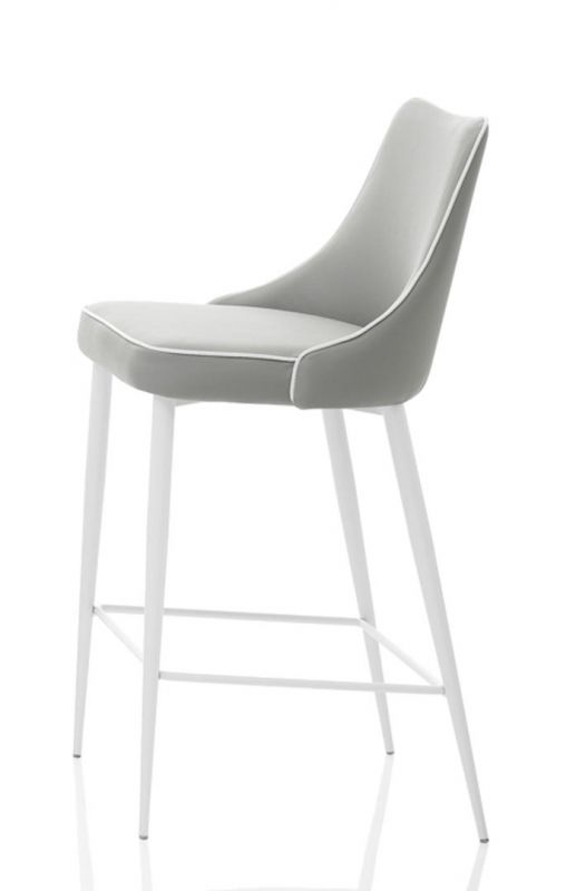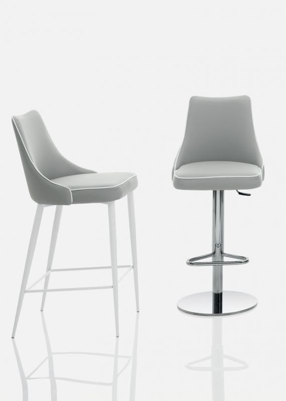Barstool with lacquered Metal frame, seat and back upholstered and covered. Piping can be matching colour or contrast colour. Also available in the version with quilted backrest (only for Waterproof Nabuk, Eco leather and Premium nappa leather).