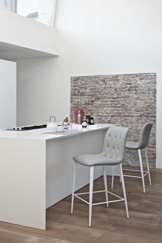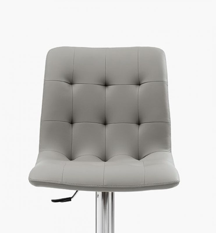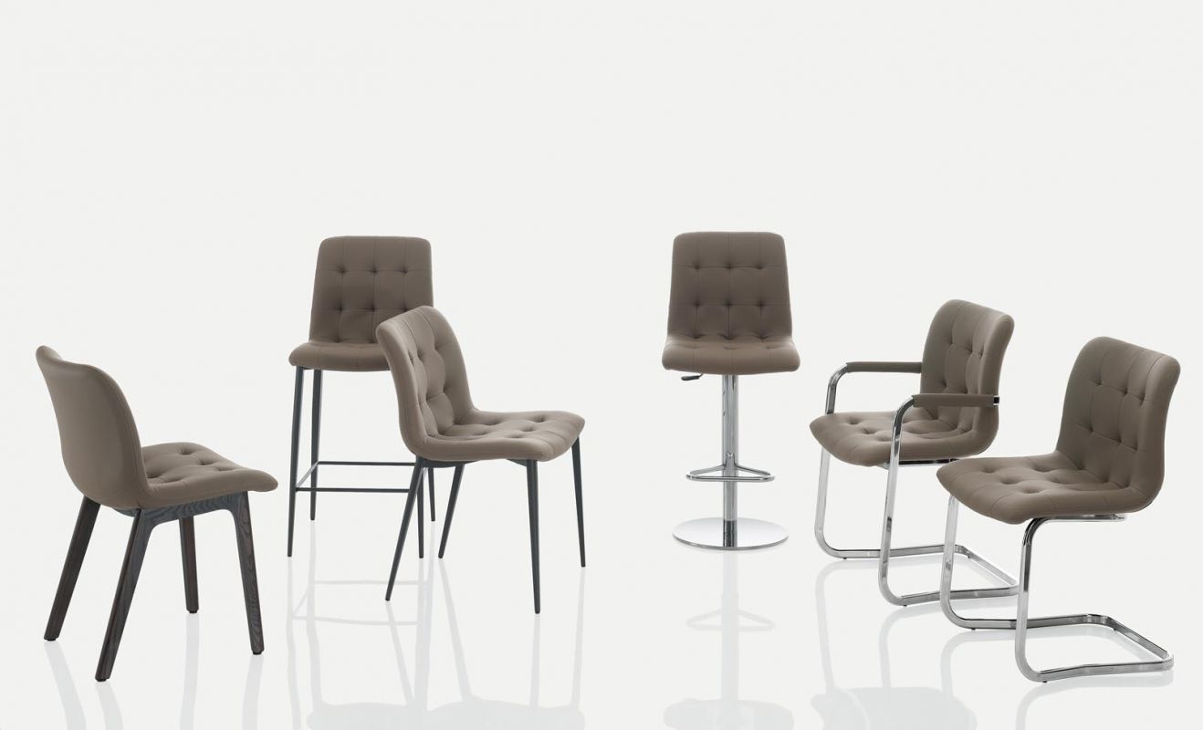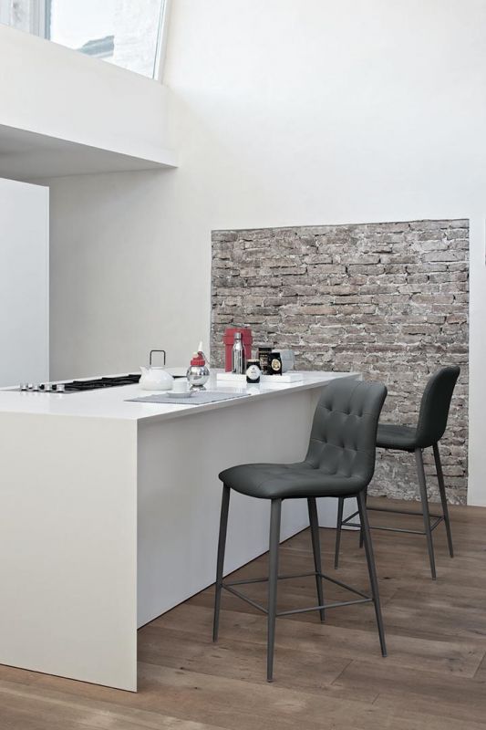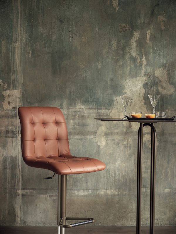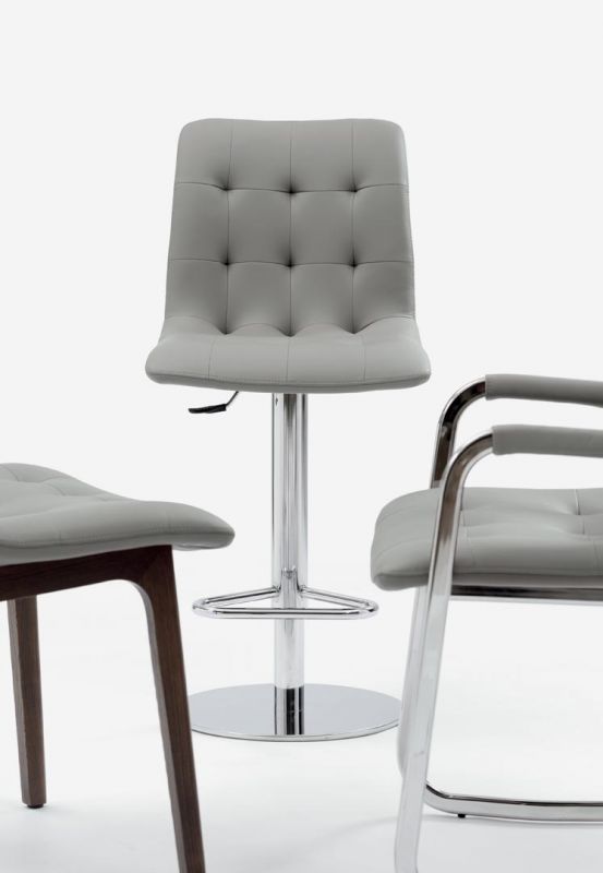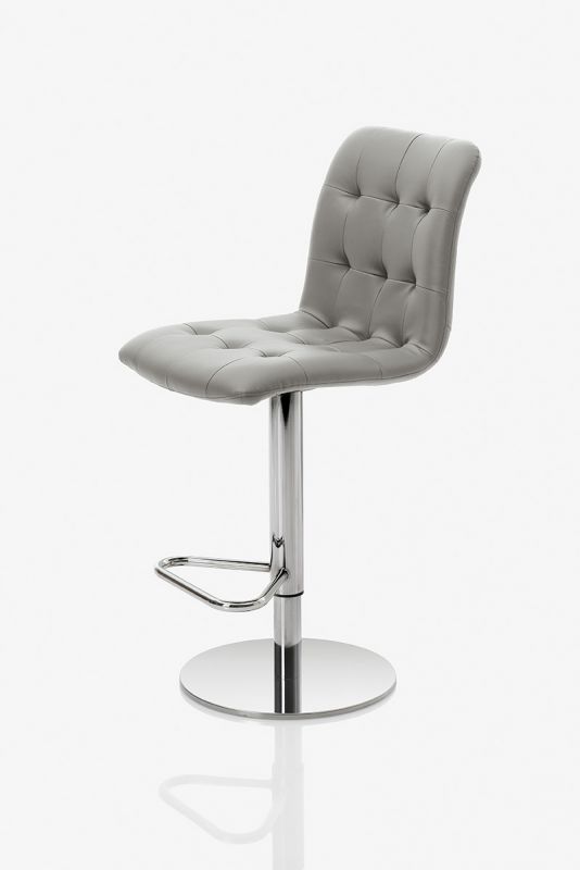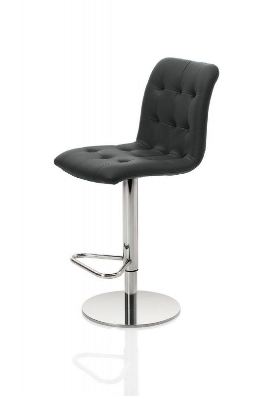 Barstool with lacquered or chrome Metal frame. Shell upholstered and quilted.