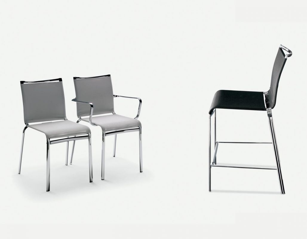 Barstool with lacquered or chrome Metal frame, seat and back in Texplast or Soft Texplast.