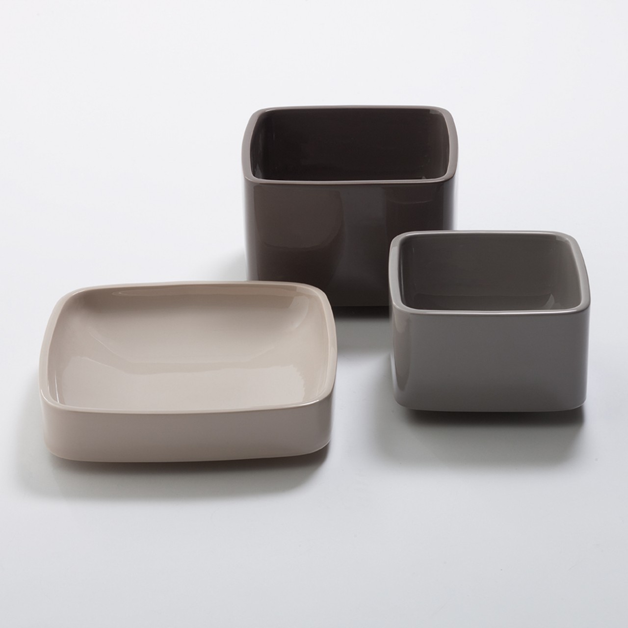 Ciotole dalla forma rigorosa ed essenziale, rese morbide dalla matericità della ceramica.