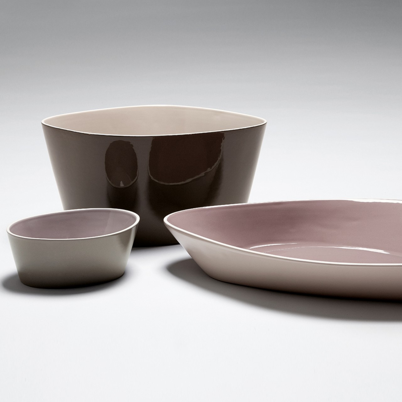 La collezione Lunar si compone di tre elementi in ceramica di diverse colorazioni e dimensioni. Questi oggetti, che ricordano con le loro forme la superficie lunare, sono pensati per poter essere double face.