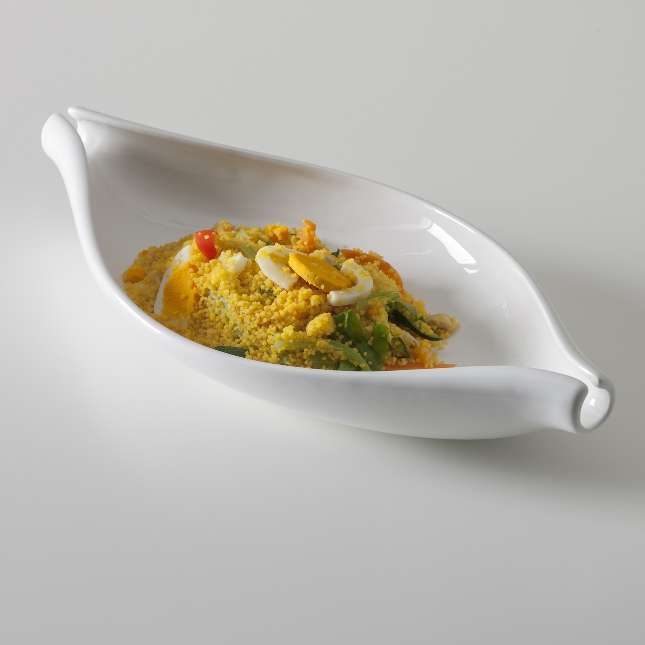 Shish Dish ha una forma organica avvolgente e può essere usato come piatto dalla forma inconsueta. perfetto per servire spiedini, ideale per pasta, risotti, dolci e frutta: un tocco esotico per la tavola.