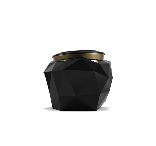 Diamond bathtub designed in fiberglass with a luxurious black high-gloss finishing. The diamond shaped sculptural body is based on its name, making it a exquisite item in any modern bathroom. This bathtub also presents a golden rim, a small detail that stands out.