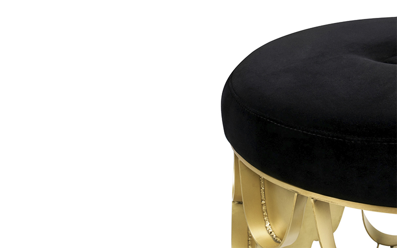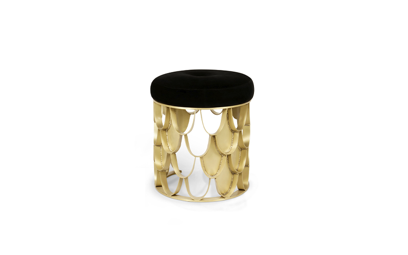 Koi Carp is a recurring symbol of Japanese culture. Its natural colour mutations reveal their capacity to adapt, just like KOI Stool. Featuring a base in brushed brass matte and a top in cotton velvet, this upholstered stool will add refined elegance to any modern contemporary home decor.