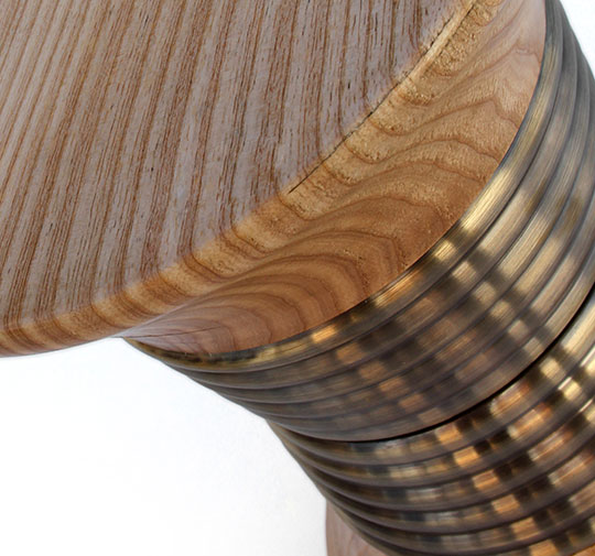 Padaung women wear neck rings as a symbol of beauty and protection. Just like it, PADAUNG Stool is the balance between softness and strength. Featuring a base in brushed aged brass and tilia wood, this contemporary wood stool will complete any modern contemporary interior design.