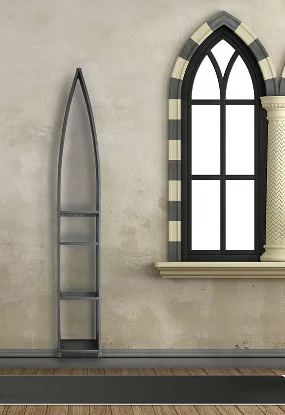 With a rigorous and slender upward design GUGLIA contains inside a niche where the wipes can be placed on functional shelves. The vertical development and the terminal part developed in an arch, they look at the style of Gothic architecture.