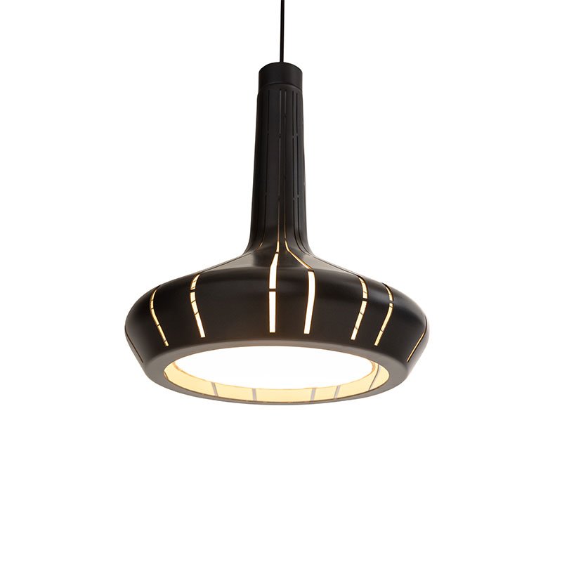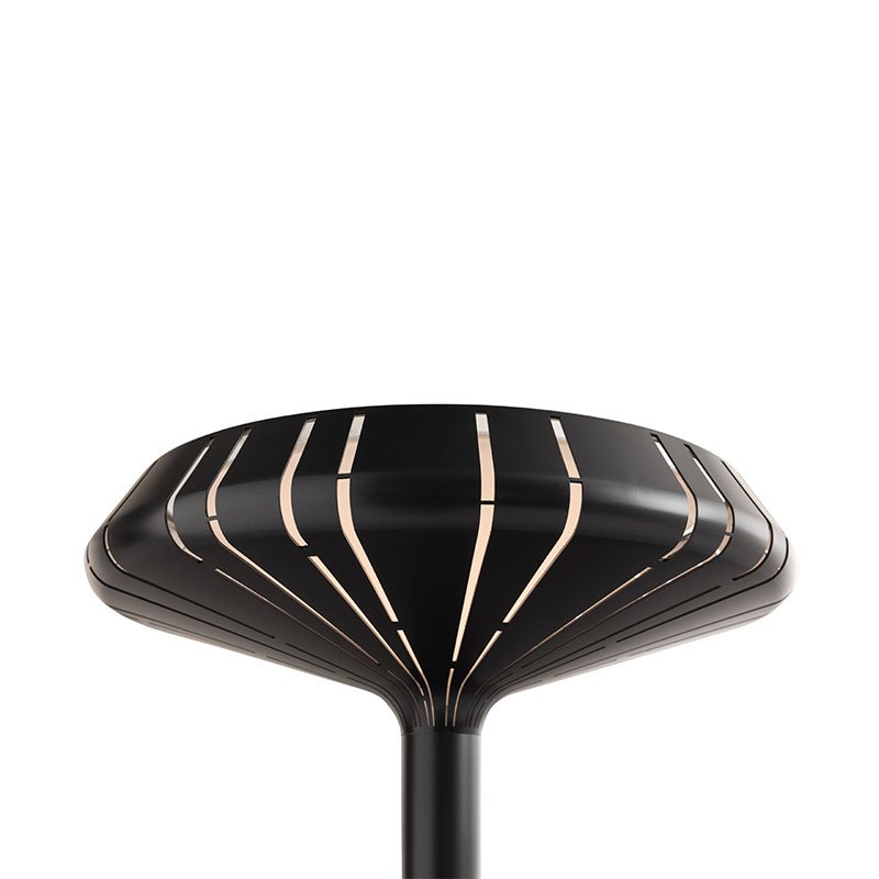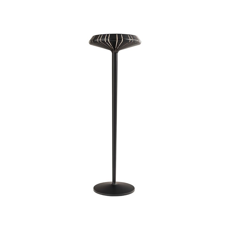 Unexpected gleams of light form the distinguishing feature of the Michel range of lamps, available in table, suspension and floor lamp versions. The conical shaped profile is made of laser cut metal, while the Titanium Silver and Steel Blue lacquer finishing enhance a project designed to achieve creative hi-tech combinations.