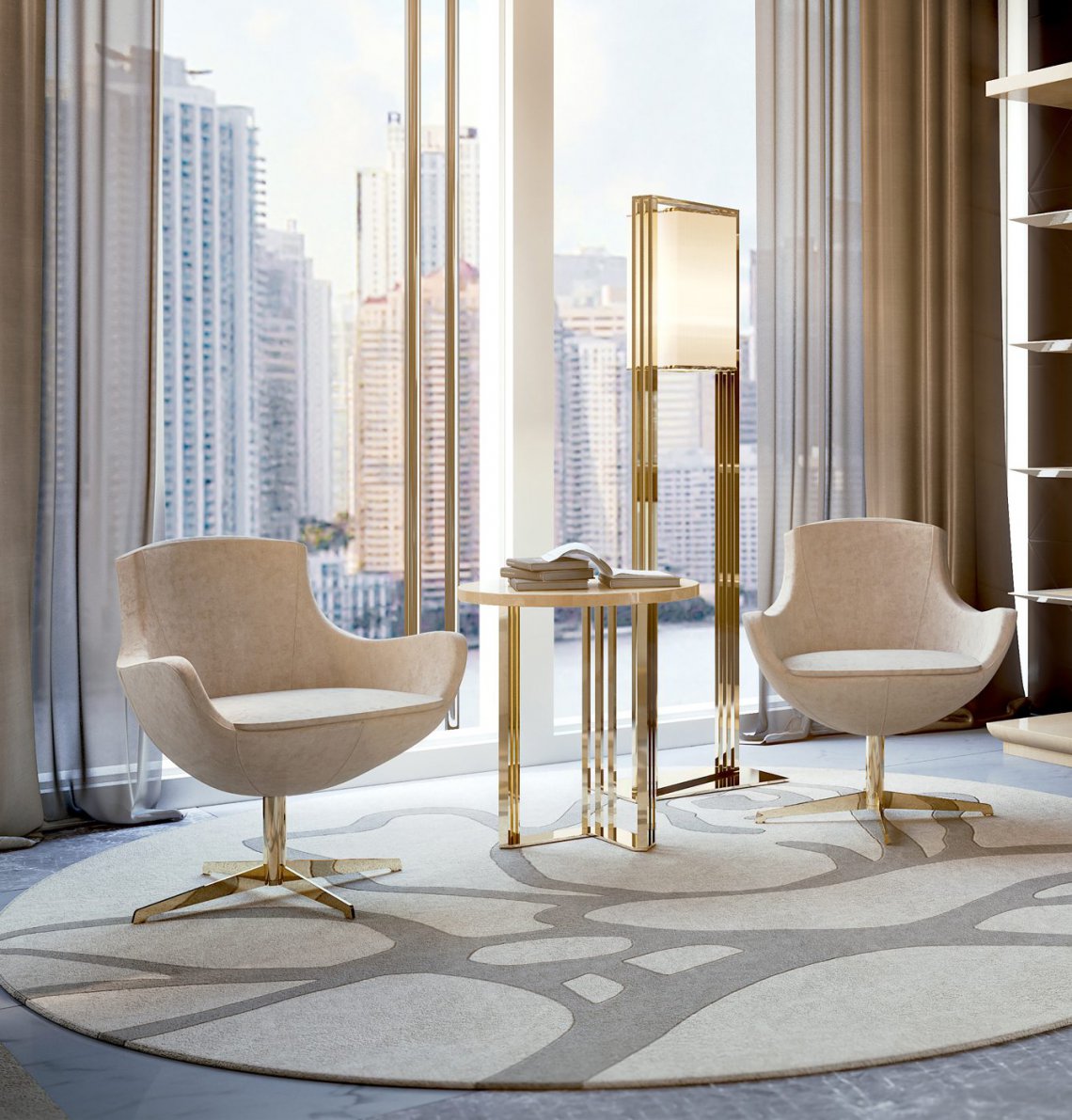 La preziosità degli arredi é accentuata dai riflessi dell’acciaio e dell’oro delle strutture, in perfetta sintonia con gli inserti dell’elegante “Rosa” del marchio Bizzotto Italia elegante dettaglio stilistico senza tempo.