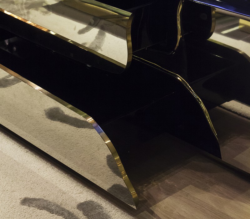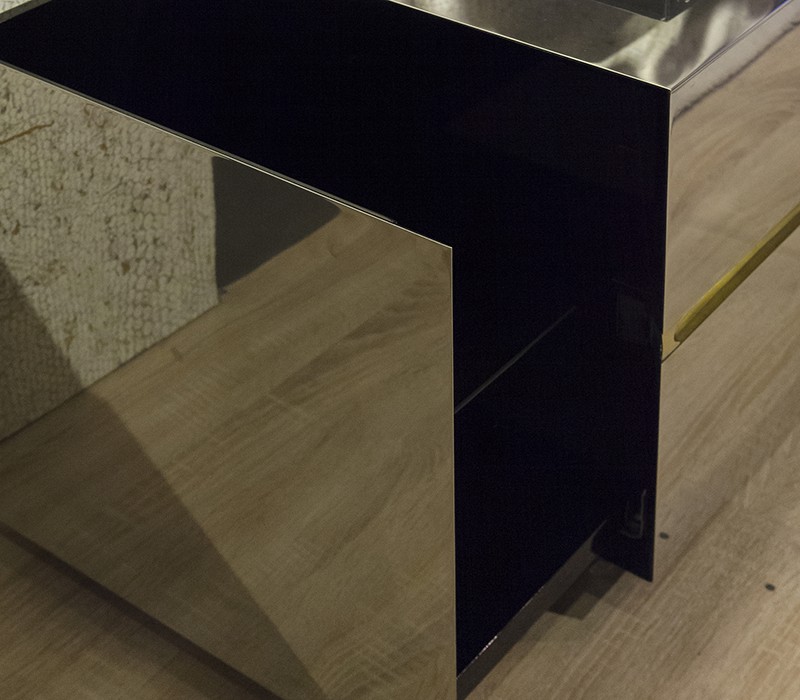 Lapiaz TV cabinet takes exceptional craftsmanship and design to a new realm. Finding beauty in the most unexpected places, this contemporary design piece is inspired by authentic karst formations created by surface dissolution, freezing, or thawing of limestone or dolomite rocks. Its organic features are achieved through the manual fitting of polished brass, and a sharp finish in polished stainless steel that portrays a perfect mirror. It is composed of two modules that open to a distinct black interior, featuring different-shaped drawers and glass shelves. The hammered gold details and the mirrored fa?ade conveys both dynamics and elegance, a beautiful duality between power and refinement to bring a new contemporary verve into interior design. A functional artwork piece born from cold and freshly cracked to show off the world rich, golden details.