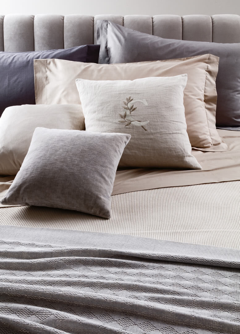 Cuscino decorativo con C ricamata monocolore - cm 50x50