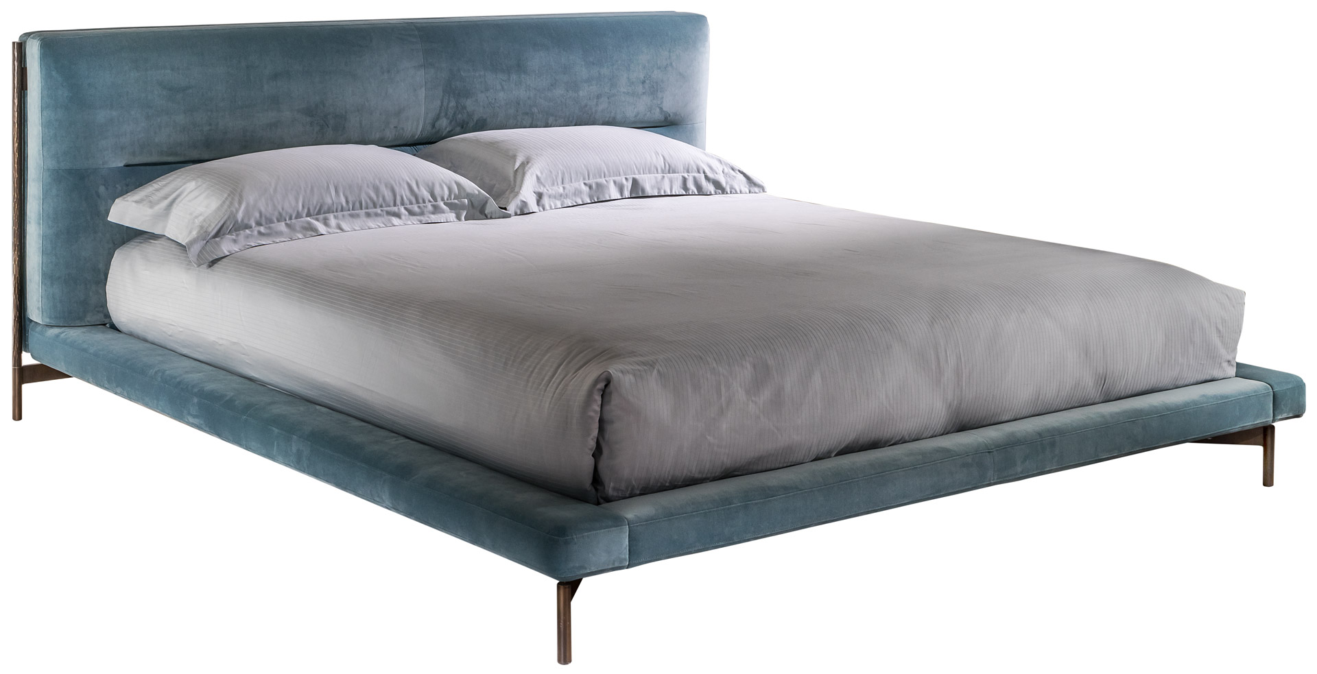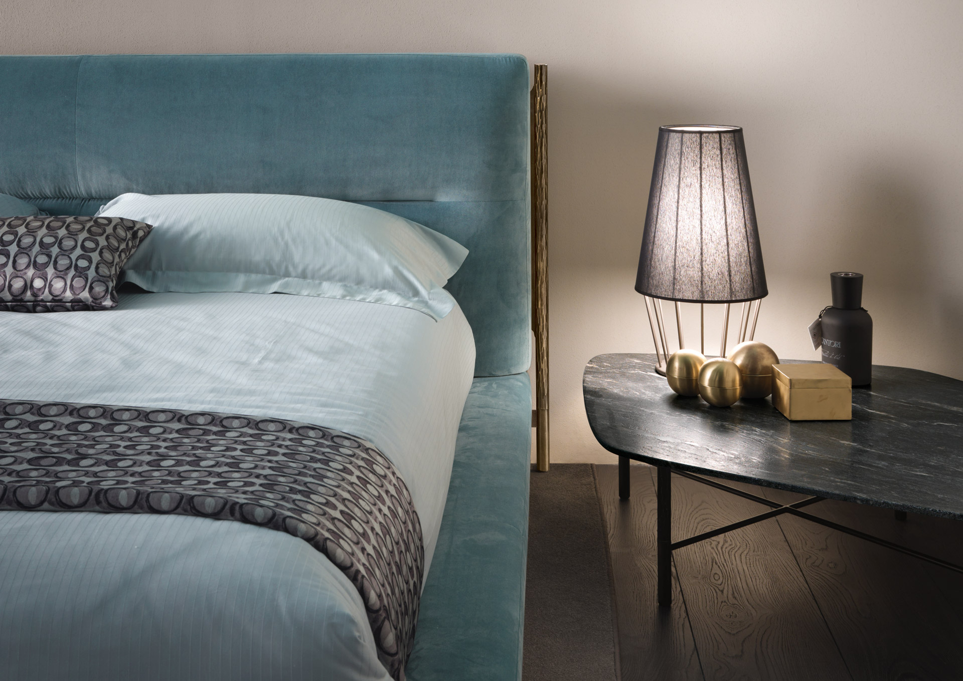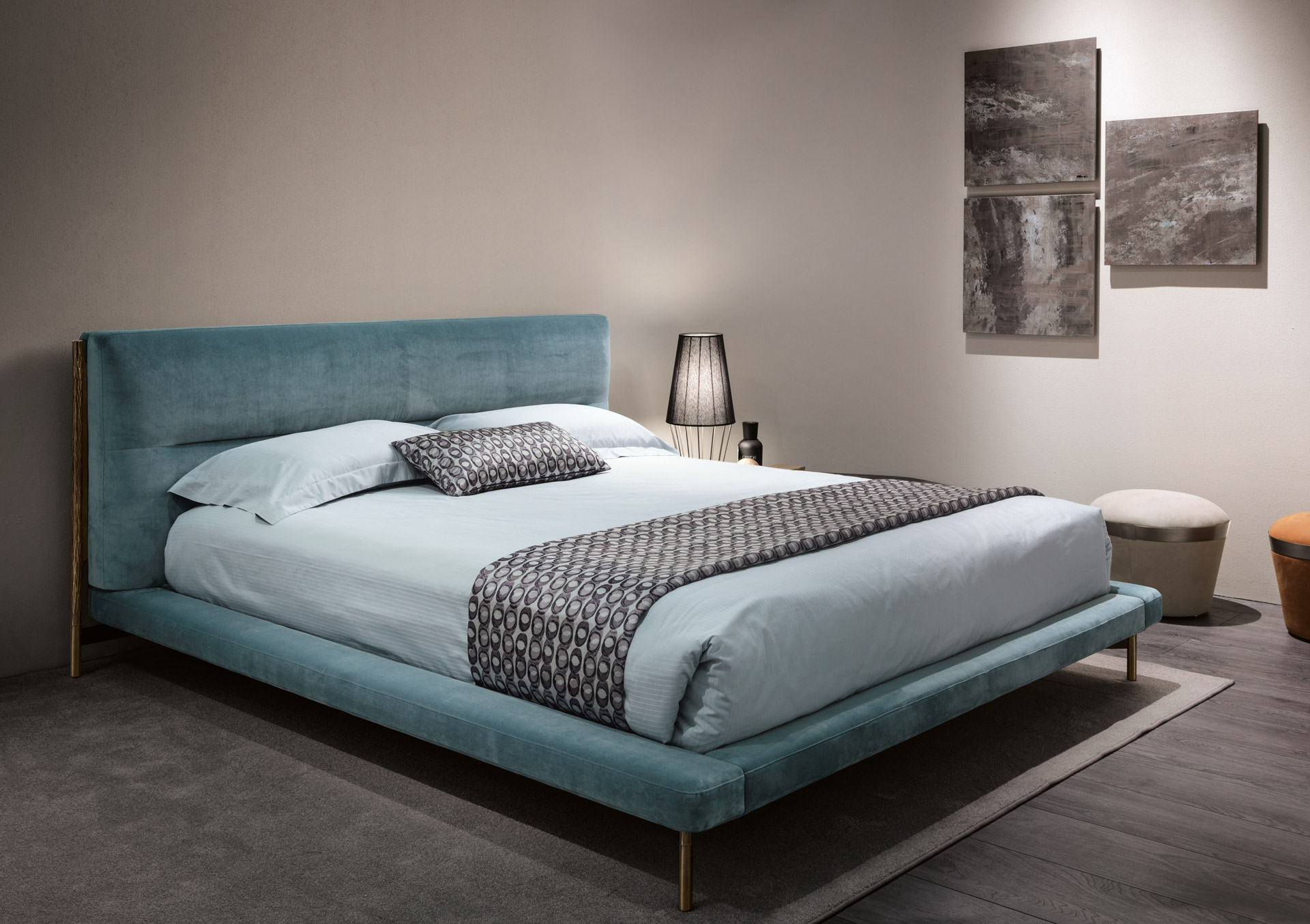 Letto matrimoniale Shanghai imbottito con testata in metallo.