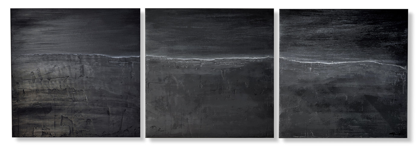 Set di 3 quadri realizzati su pannelli quadrati in legno da cm 55x55 h, da poter posizionare sia in orizzontale che in verticale; la decorazione è realizzata con stucchi, colori acrilici e iridescenti per dare un segno estetico alla parte. Il particolare che risalta è la linea di luce che illumina la via creando continuità nella composizione. Un quadro astratto dove le forme mistificano la percezione, dando profondità alla bidimensionalità grazie ai distanziali nel retro del pannello che creano un gioco di luci e ombre nella parete.