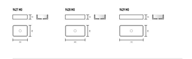 Top washbasins in Monolith, with no overflow, for Monolith drain plug.
