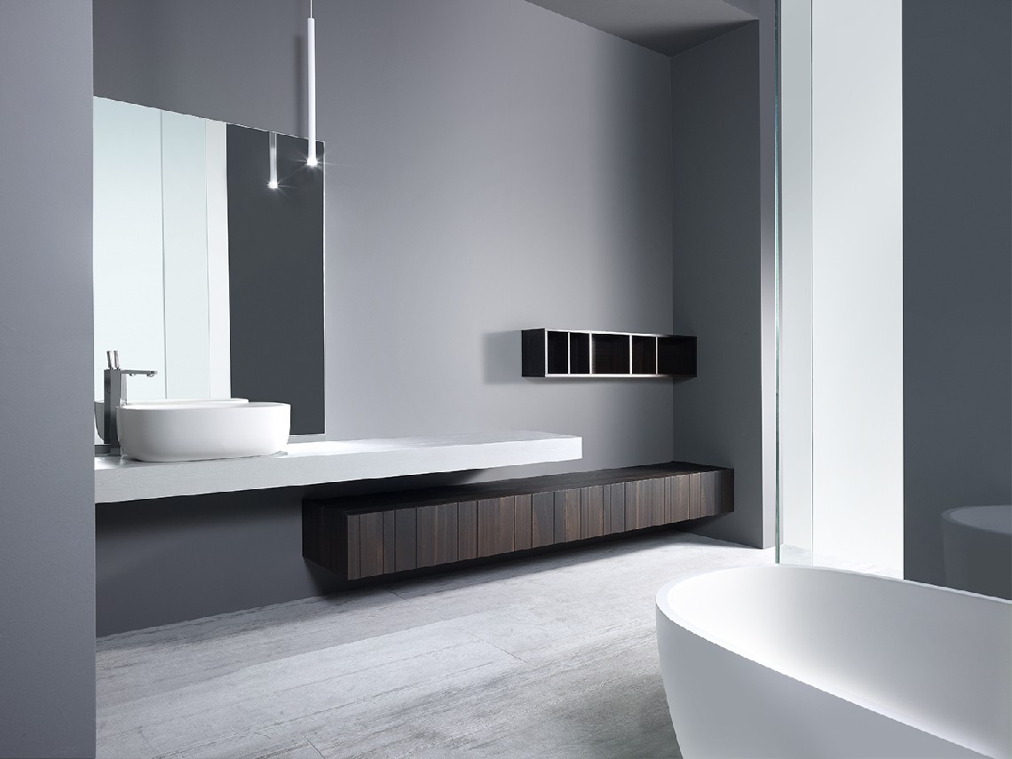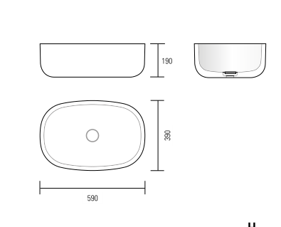 Top washbasins in Monolith, with no overflow, for Monolith drain plug.