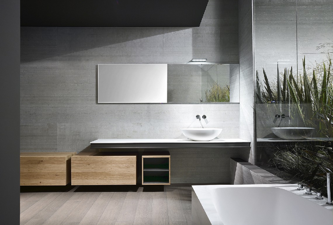 Top washbasins in Monolith, with no overflow, for Monolith drain plug.