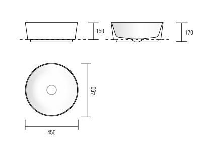 Lavabo da appoggio semi incassato, in Monolith, senza troppo pieno, tappo piletta in Monolith.