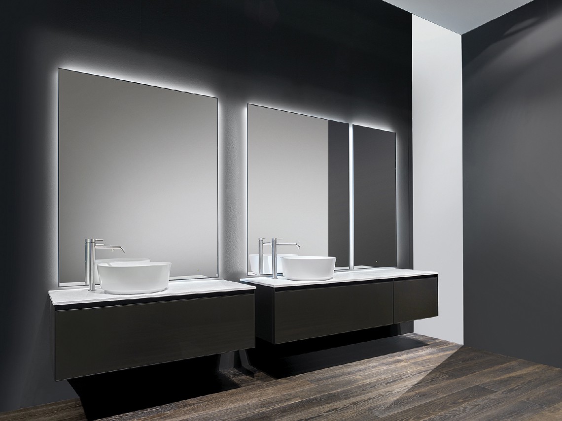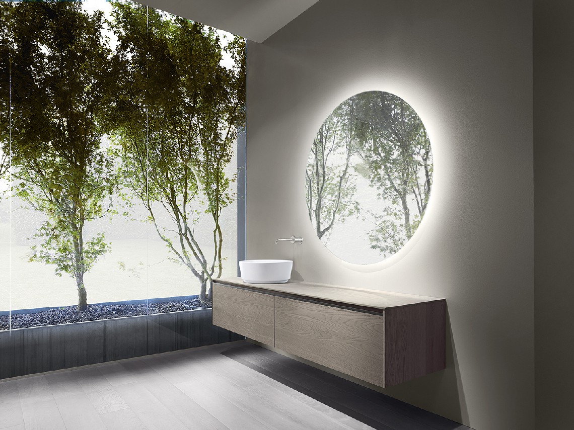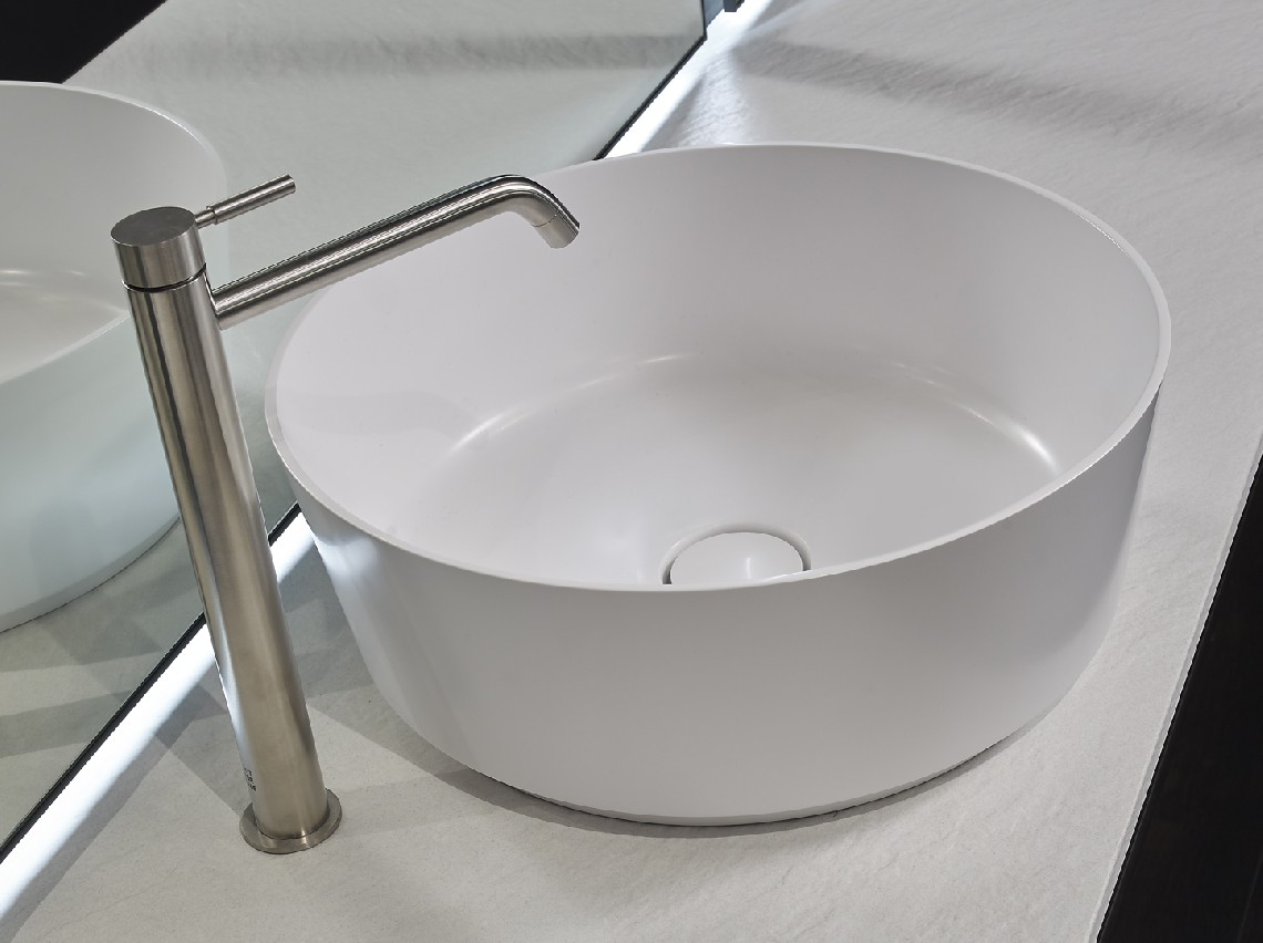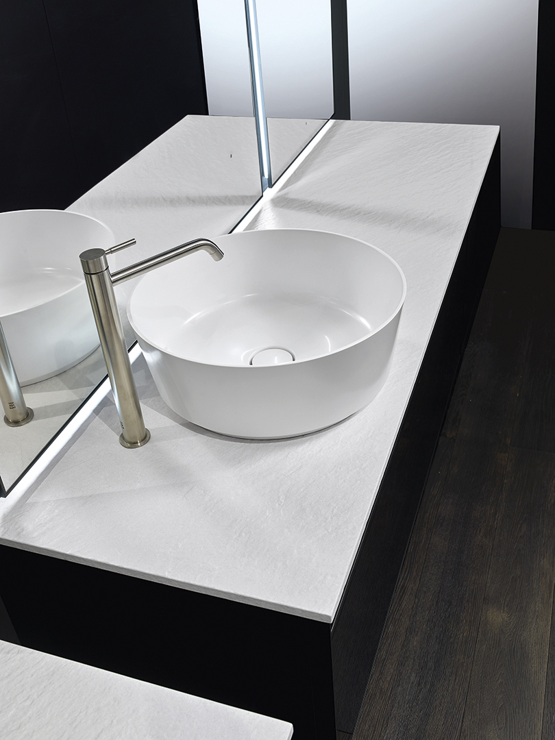 Lavabi da appoggio in Monolith, senza troppo pieno, con tappo piletta in Monolith.
