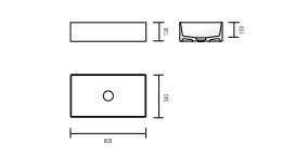 Top or semi built-in top washbasin in Monolith, with no overflow, for Monolith drain plug.