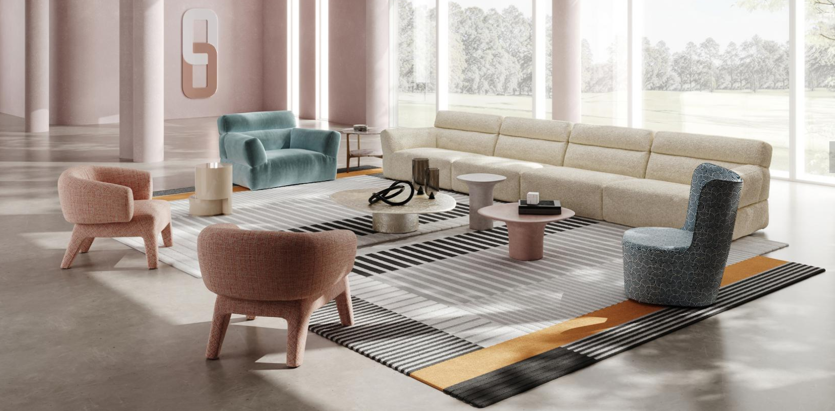 An asymmetrical rug, handcrafted using manual Tufting method, made of wool and viscose.