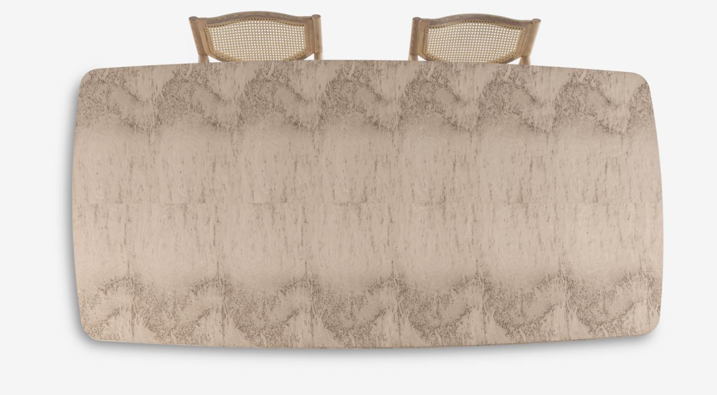 Tabletop: marble, birch burl, solid iroko wood (for outdoor version).