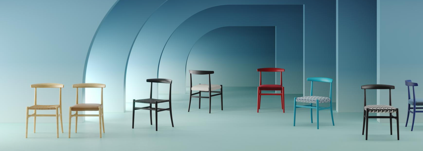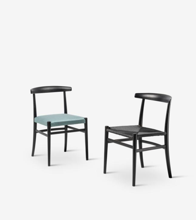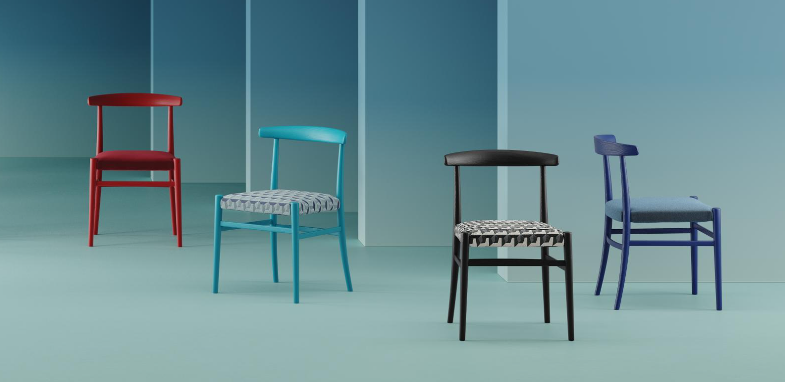A chair with captivating yet simultaneously rigorous and refined design, suitable for residential and contract projects. Available in the padded version, upholstered in fabric or leather, or corded, with a wide range of trendy finishes and colours.