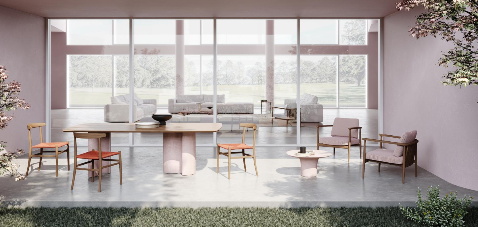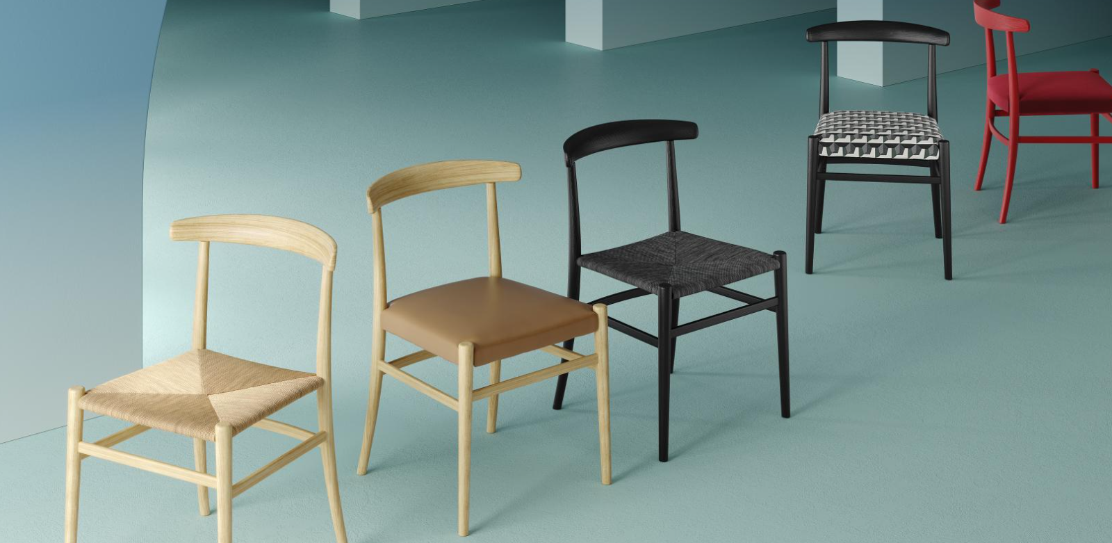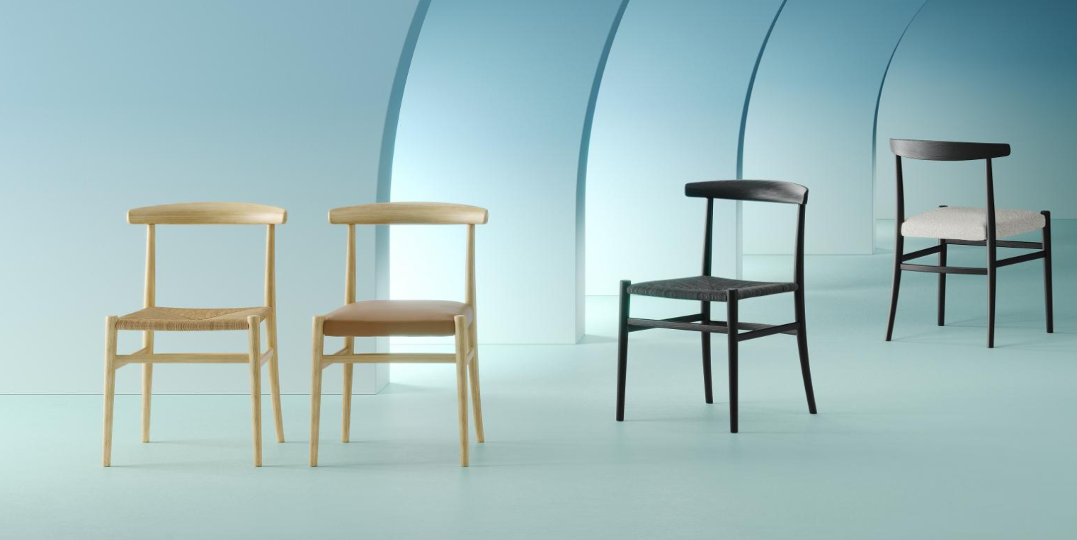 A chair with captivating yet simultaneously rigorous and refined design, suitable for residential and contract projects. Available in the padded version, upholstered in fabric or leather, or corded, with a wide range of trendy finishes and colours.