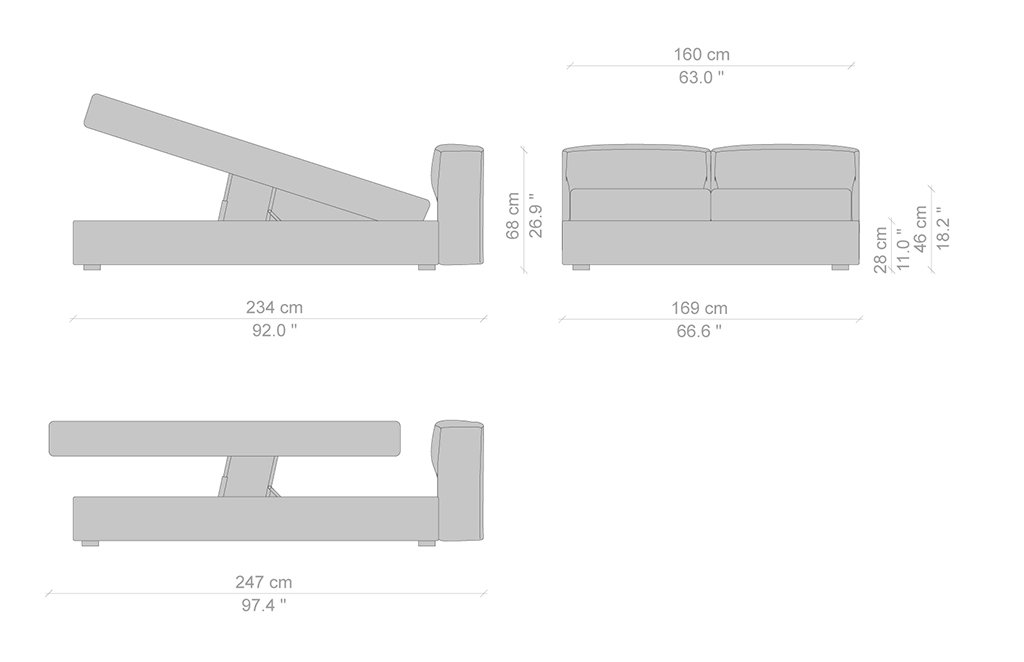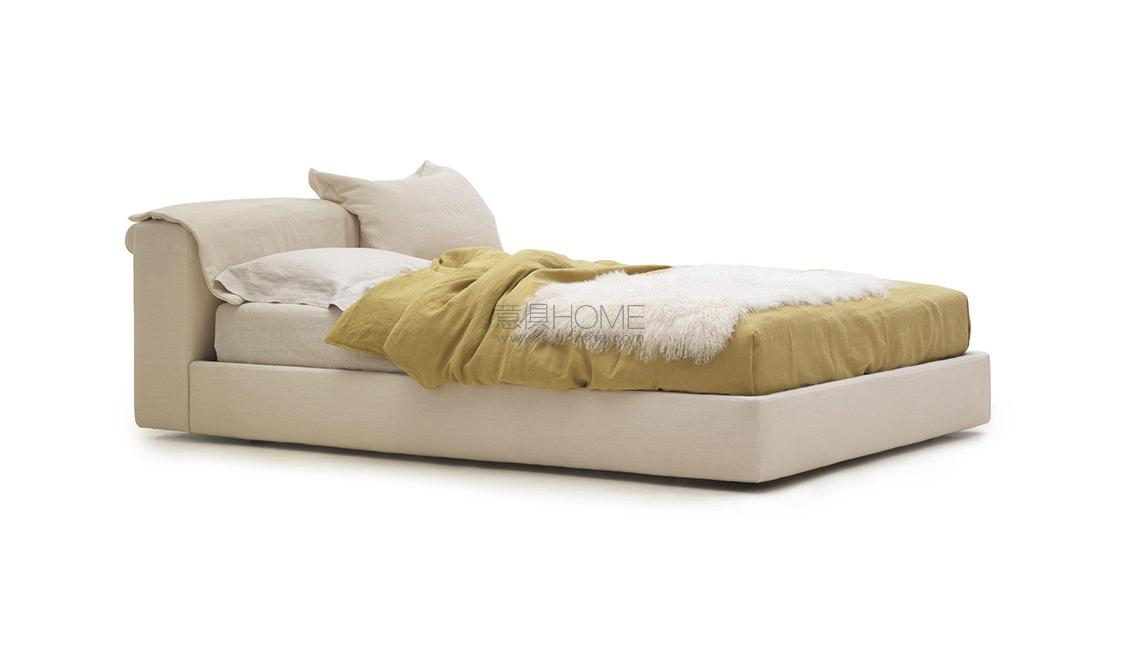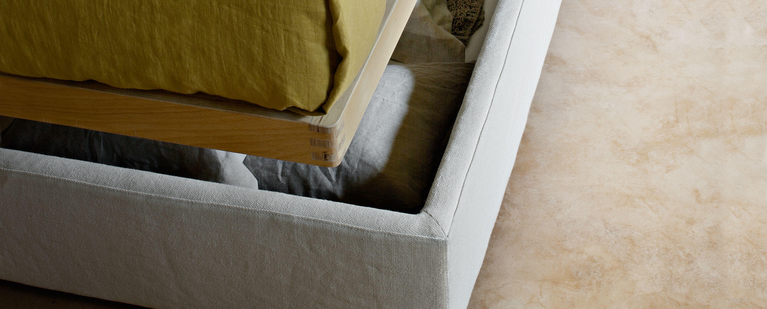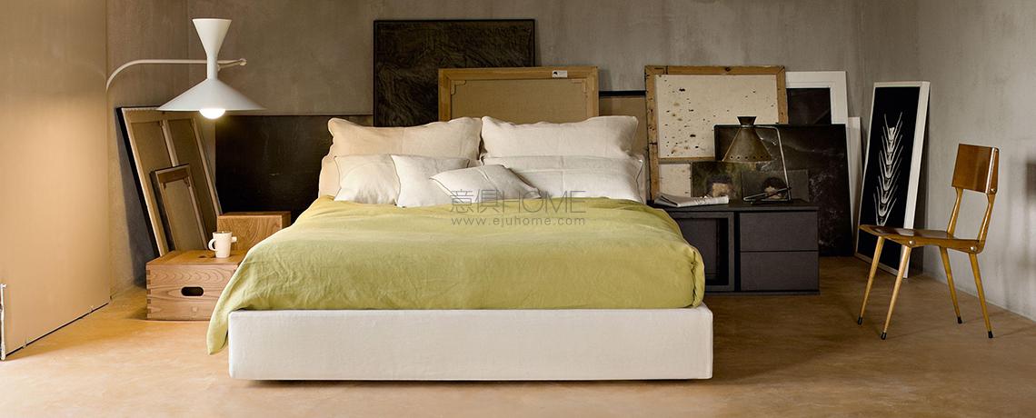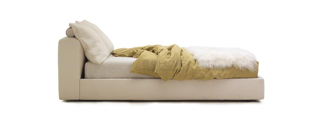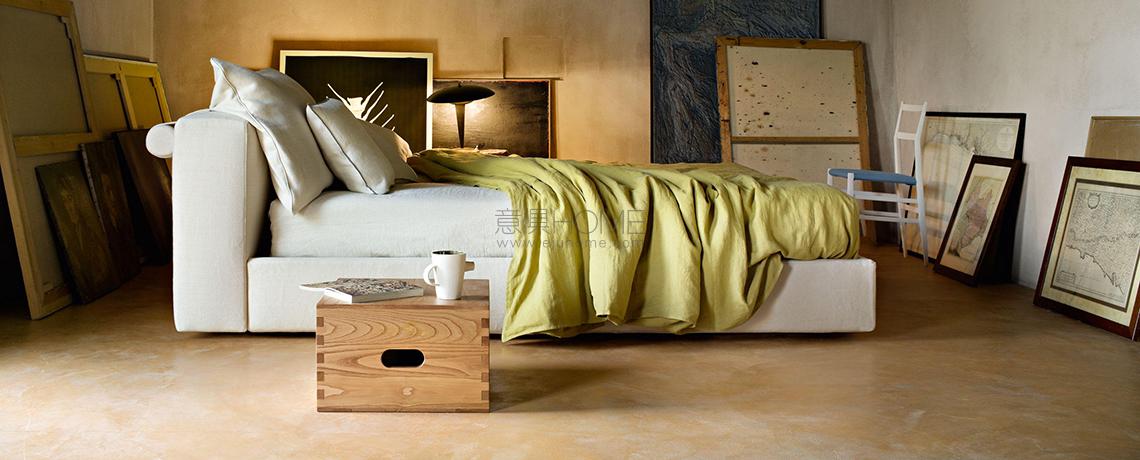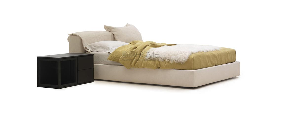 Un letto dalle linea semplice ma di grande carattere, che evolve in modo naturale i concetti di comodità e stile già espressi nell’omonimo divano. Una sintesi perfetta tra estetica ed ergonomia, ottenuta grazie alle ricerche compiute da Cassina sulle doghe di ultima generazione, sulle reti, sui materassi e sul design. Il giroletto e la testiera imbottiti sono disponibili con rivestimento tessile sfoderabile o con rivestimento fisso in pelle. La struttura è presentata in un’unica dimensione, con contenitore di apertura a compasso dotato di un meccanismo che consente di sollevare il complesso materasso-rete anche lateralmente per agevolare il riposizionamento delle lenzuola. Sono inoltre previste cuscinature da appoggiare sulla sommità della testiera per accogliere i guanciali al loro interno. Il letto è completato da comodini notte in rovere tinto scuro con due scomparti che possono accogliere una cassettiera a due cassetti e un tavolino.