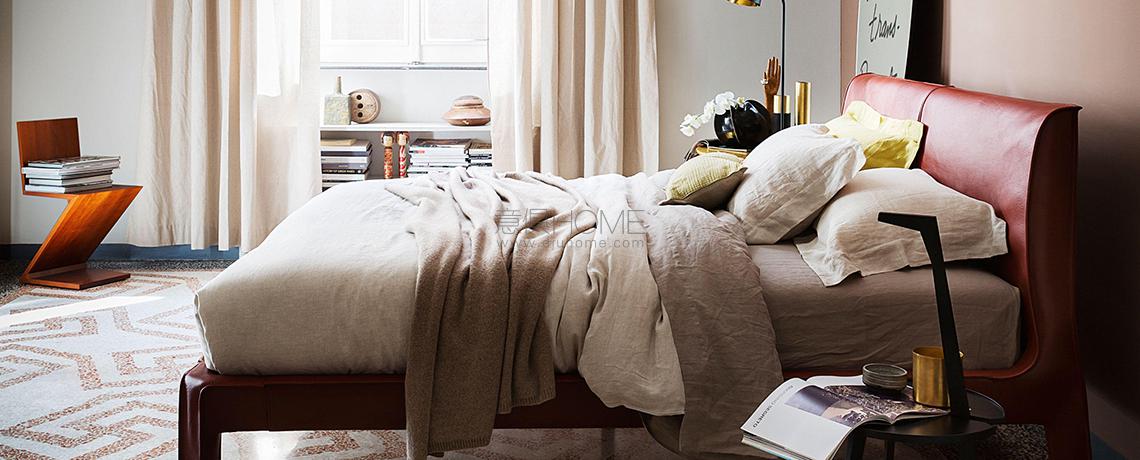 Il letto progettato da Mario Bellini si distingue per la struttura e le gambe rivestite in cuoio, un materiale caldo e prezioso, che viene arricchito con le impunture selleria visibili nelle congiunzioni tra le parti. La testiera leggermente affusolata e imbottita, definita da una cucitura centrale, è rivestita in cuoio e pelle pregiata, trattata con una concia speciale che la rende particolarmente morbida e confortevole. La lavorazione avanzata di materiali spessi e corposi rivela l’esperienza di Cassina e l’eccezionale maestria perfezionata in seguito alla realizzazione della sedia Cab. Le diverse parti in cuoio, tagliate mediante l’uso di una macchina a controllo numerico, sono successivamente lavorate manualmente per rendere questo esemplare un autentico capolavoro di manifattura. Il letto è disponibile nella versione con testiera tradizionale o fissa a parete, ideale per l’arredo in ambito contract.