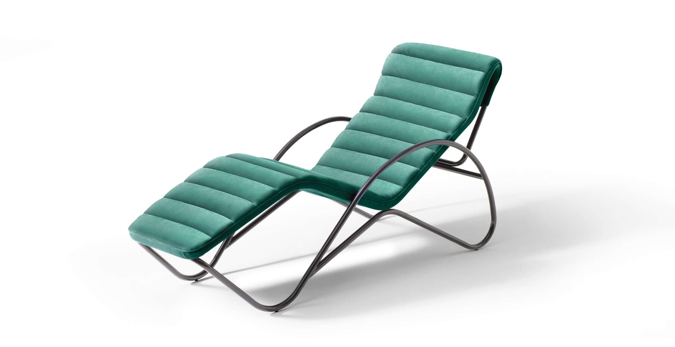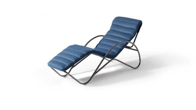 1943年11月,Charlotte Perriand在越南擔(dān)任工藝總監(jiān)期間,設(shè)計(jì)了Chaise longue Indochine。由于她在懷孕的最后幾個(gè)月不得不呆在床上休養(yǎng),于是設(shè)計(jì)了這款帶扶手的躺椅,以便繼續(xù)閱讀、寫(xiě)作和繪畫(huà)。第一款躺椅是用藤條制成的,因?yàn)楸藭r(shí)的太平洋戰(zhàn)爭(zhēng)導(dǎo)致無(wú)法找到鋼材。Cassina與Pernette Perriand-Barsac合作,重拾現(xiàn)代主義先驅(qū)的原始直覺(jué),以噴漆管狀金屬打造出Chaise longue Indochine。在逐漸增強(qiáng)的線條中,通過(guò)緊固件連接的三個(gè)弧形部件相互交叉,勾勒出這款家具的空氣動(dòng)力輪廓,扶手是底座的自然延續(xù)。躺椅的椅座上裝有彈力帶,可為座椅提供支撐,提高舒適度??蚣苌蠂@著一個(gè)可拆卸的椅墊,該椅墊由再生PET纖維制成,質(zhì)地柔軟,邊緣縫有絎縫緯線。