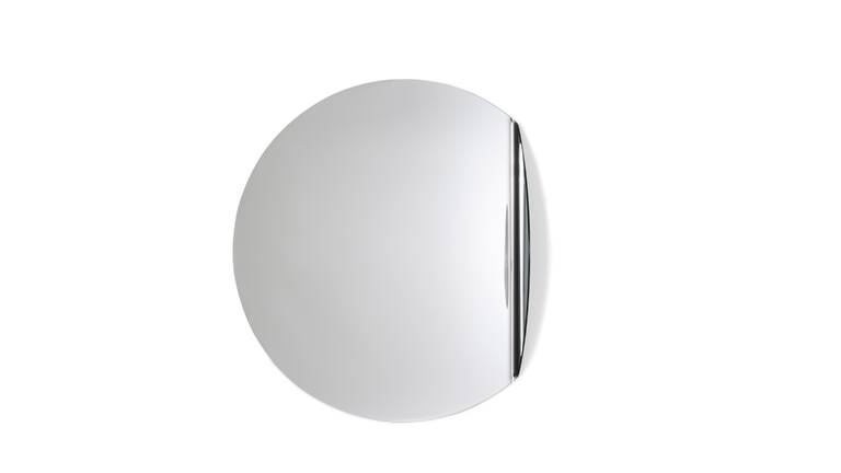 這是一面極簡而富有詩意的鏡子,正如Michael Anastassiades的一貫風(fēng)格。該作品融合了高超的工藝和技術(shù),為家居空間帶來了一種豐富的想象力,用于照鏡子的同時,仿佛與地平線融為一體,模擬出夕陽西下的景象。Gibbous是將一塊厚重的玻璃片放入烤爐中加熱數(shù)小時后制成的,高溫使部分玻璃片在自身重量的作用下變形,產(chǎn)生彎曲。鏡子的厚度適中,是精湛工藝的結(jié)果,彰顯了其獨特的個性。該系列包括兩款不同尺寸的版本,可根據(jù)所需高度以不同方式安裝在墻上,比如跨在兩面墻之間的夾縫上,或者掛在一個家具的上方,這種懸掛方式令Gibbous就像地平線上的太陽一樣融化在家具上。鏡面的更大區(qū)域還可輔以LED照明系統(tǒng),以擴(kuò)大光影重疊的效果。